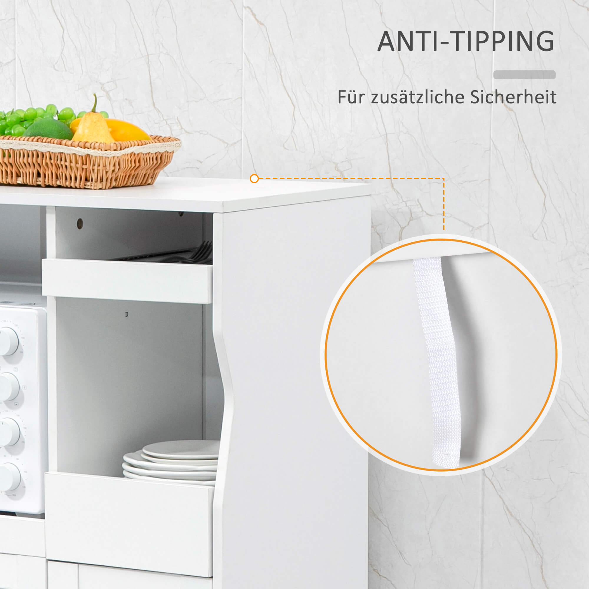 ✔ Ausgestattet mit einem Anti-Kipp-Gurt. Der Schrank kann zur Sicherheit an der Wand befestigt werden