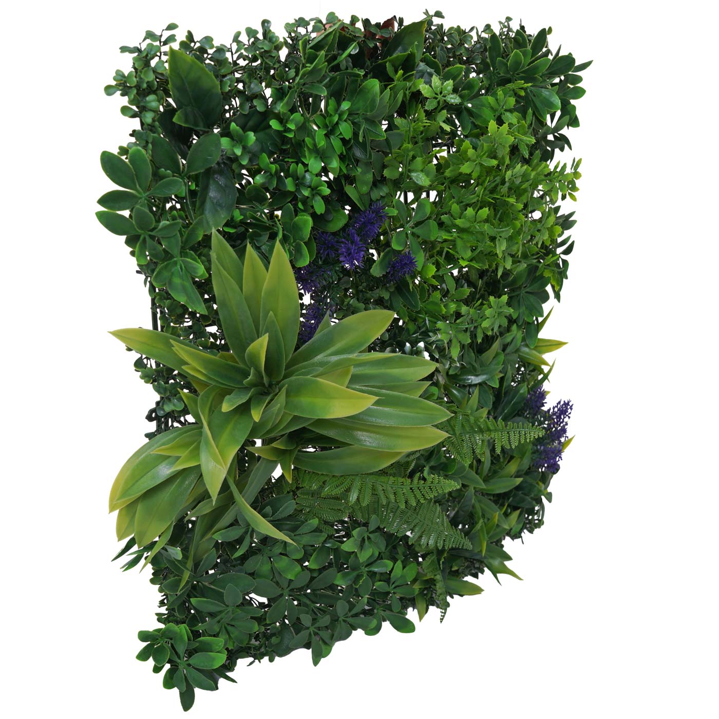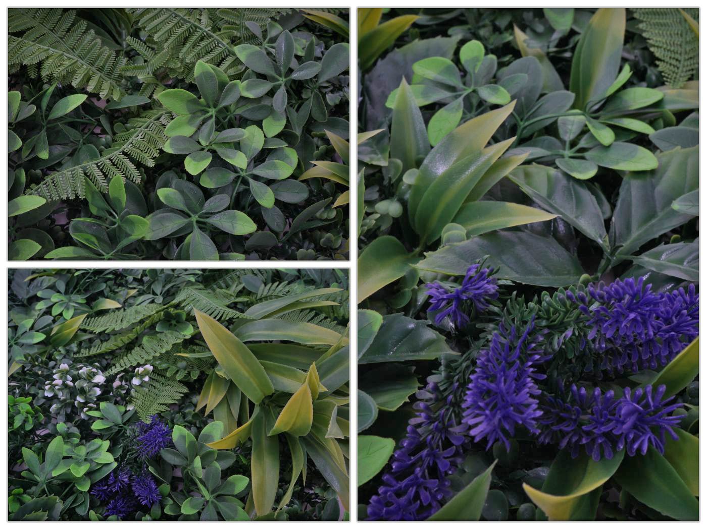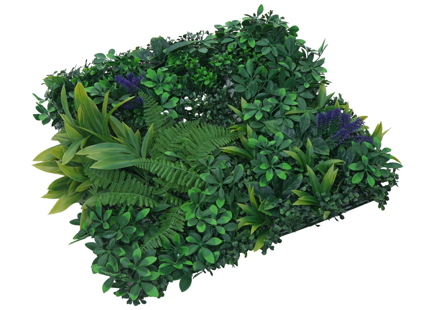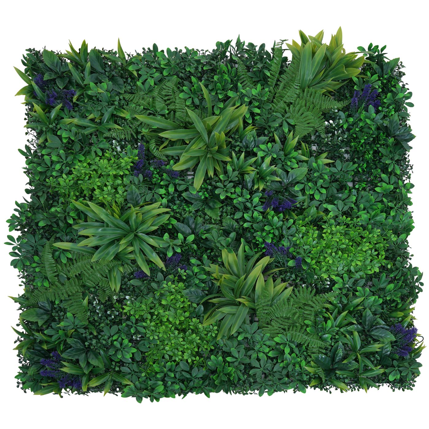 Künstliche Pflanzenwand 1m² Grün mit Lila Blüten, Wanddeko Indoor Outdoor