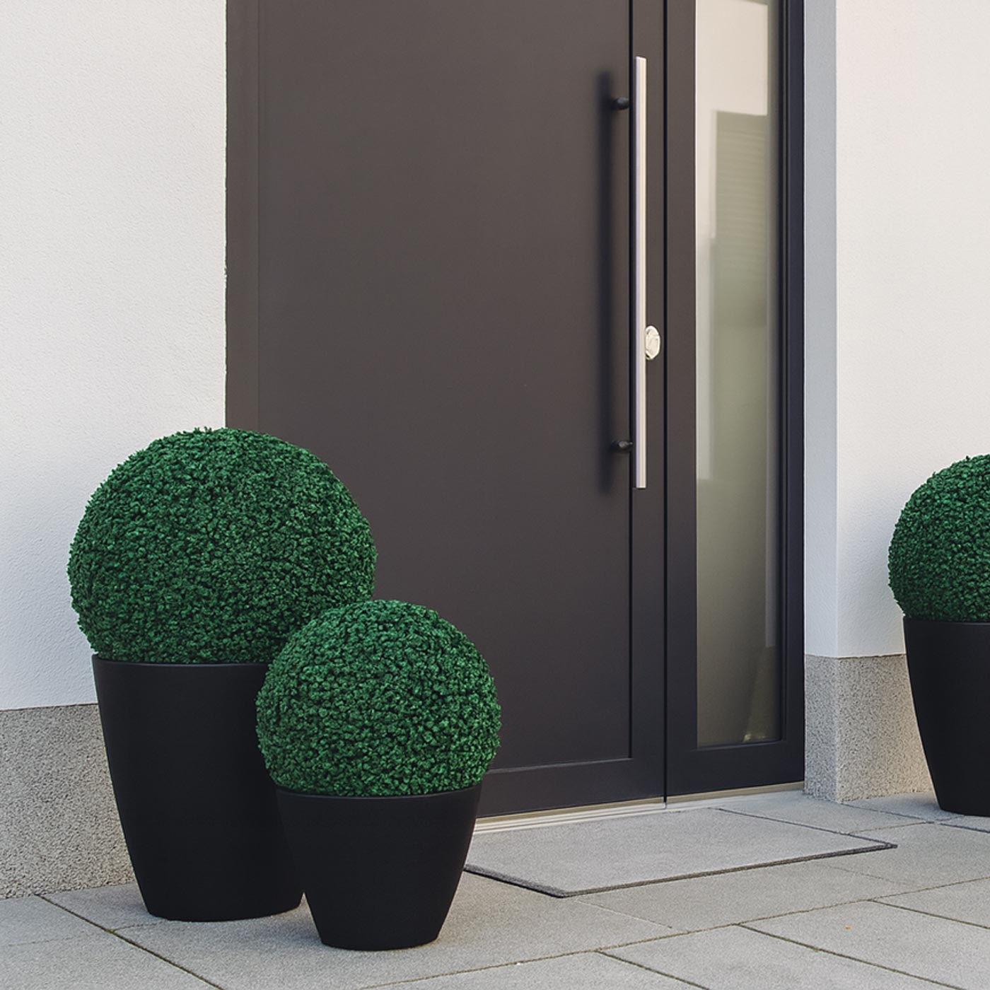Die künstliche Buchsbaumkugel lässt sich flexibel platzieren – ob als Blickfang im Wohnzimmer. eleganter Abschluss auf einer Säule. einladende Dekoration vor der Haustür oder hängend an der Decke. Besonders harmonisch wirkt die große Kugel in Kombination mit einer kleineren Variante oder anderen Kunstpflanzen.