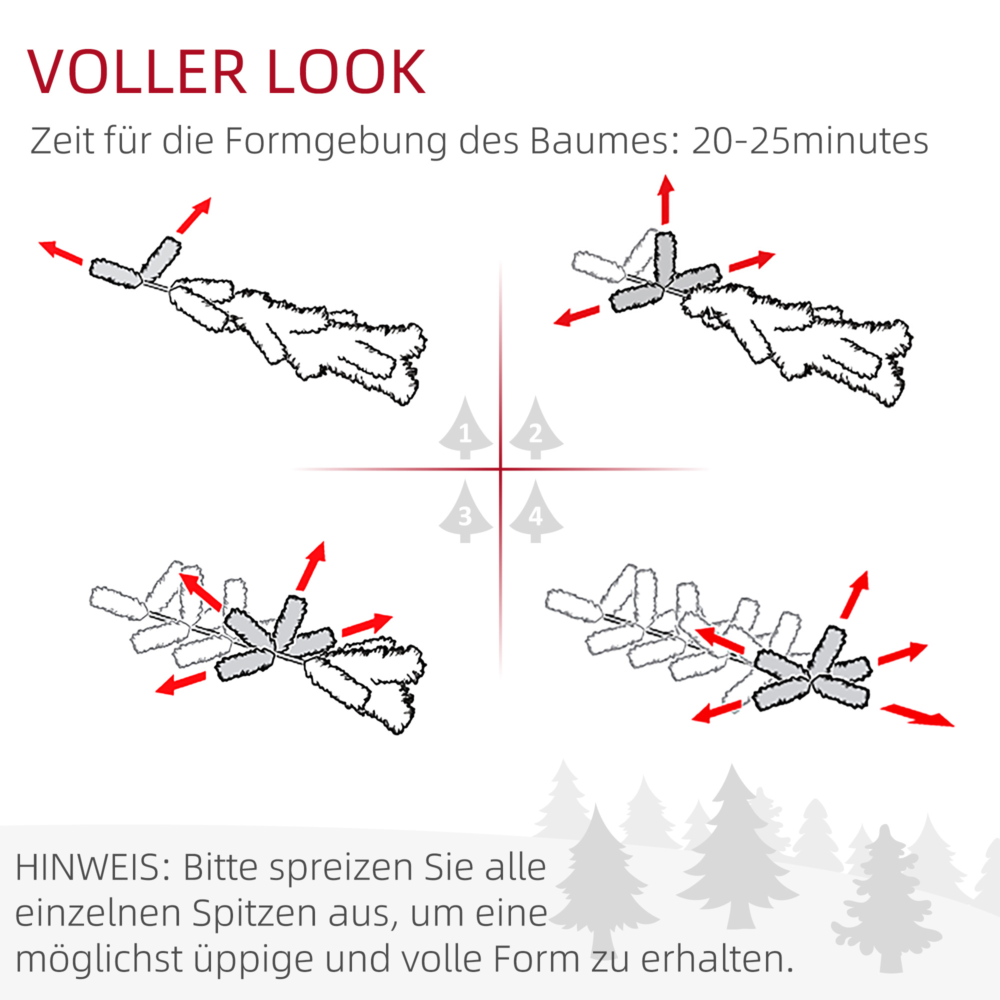 - Hinweis: Nur für den Innenbereich, nicht für den Außenbereich geeignet. Für ein realistischeres Aussehen, alle Zweige einzeln ausbreiten, dies dauert 20 bis 25 Minuten. Die Dekorationen sind nicht enthalten.
