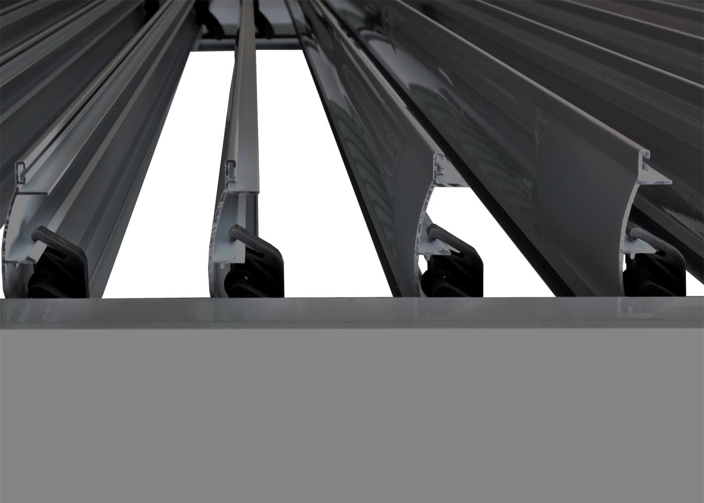 • Gestell und Dach: Pulverbeschichtetes Aluminium (RAL 7016)