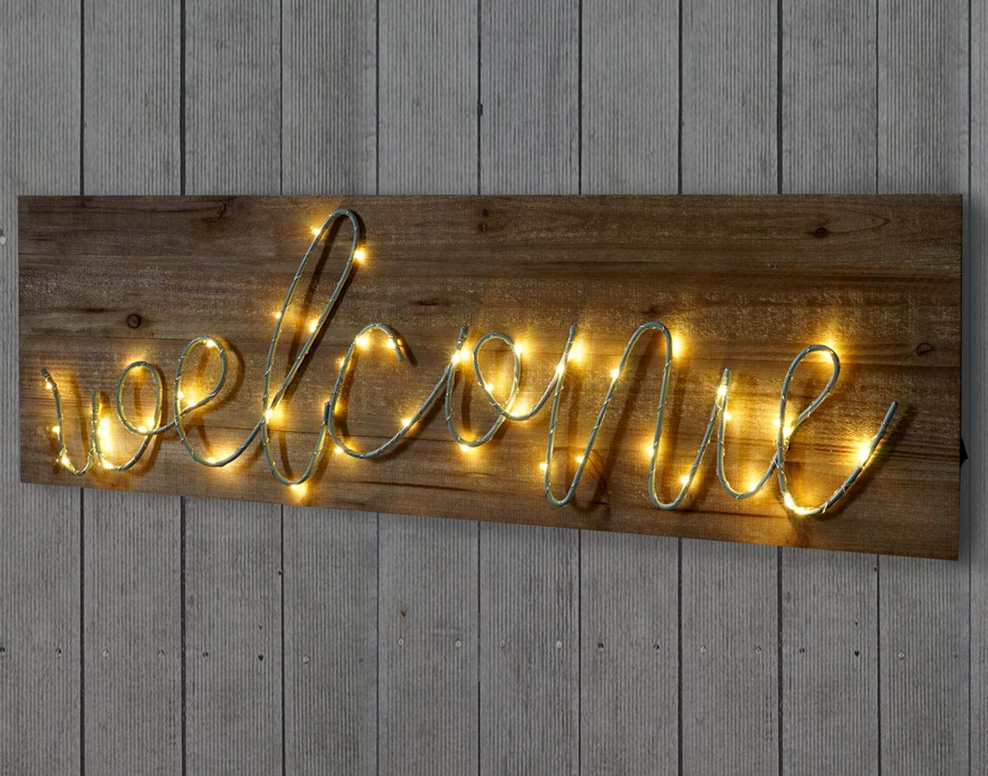 LED-Holzschild mit Beleuchtung, Leuchtbild Wandbild, Landhaus ~ 28x88x3cm, welcome