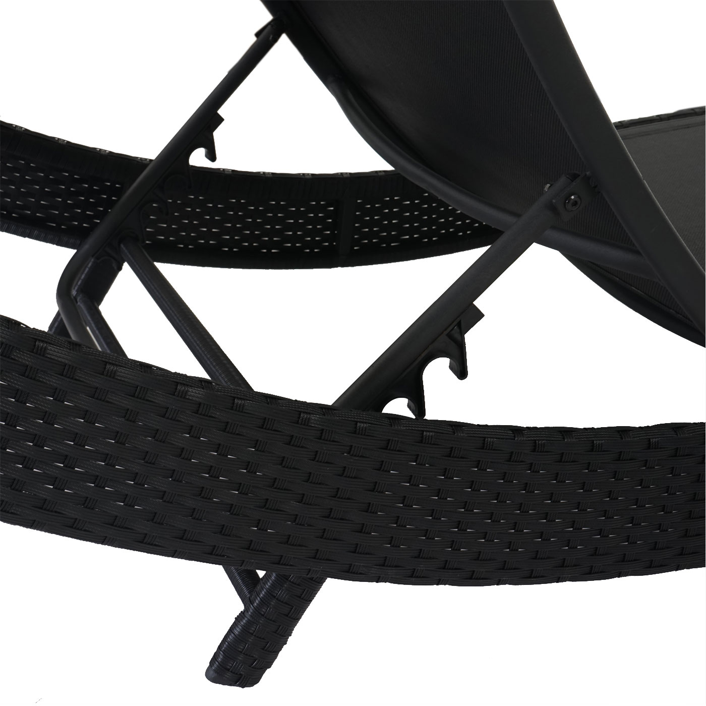 Sonnenliege Savannah, Relaxliege Gartenliege Liege, Poly-Rattan ~ anthrazit, Bezug schwarz