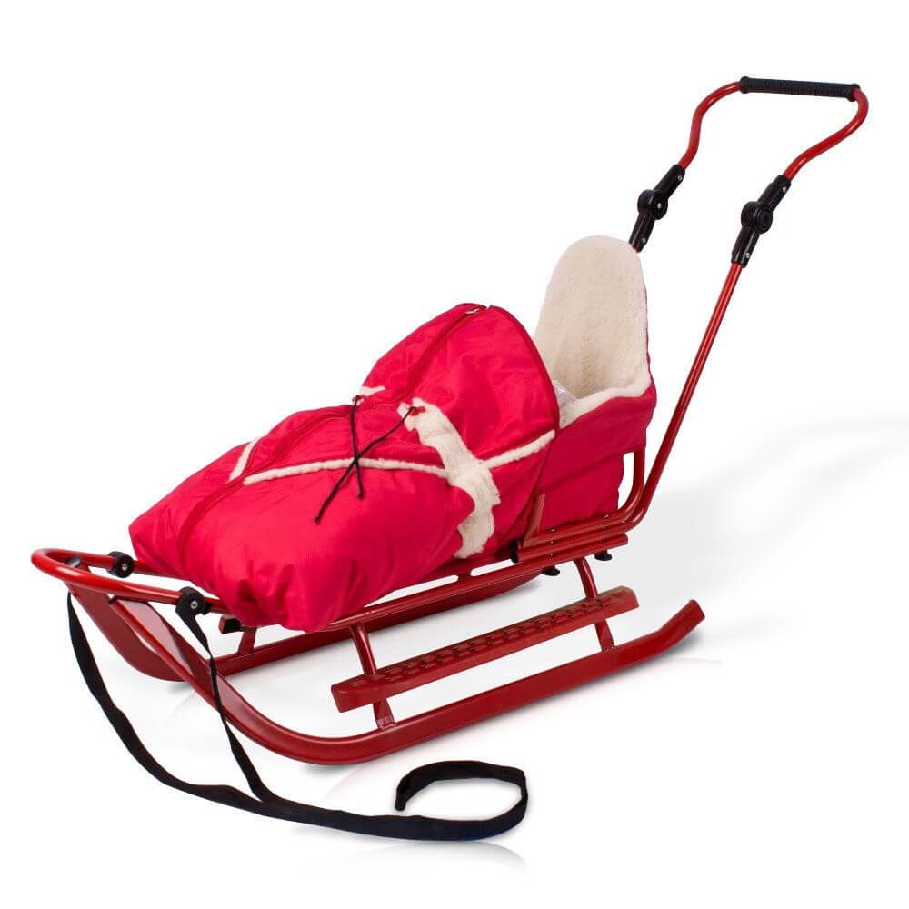 Die hohe Rückenlehne mit extra Gurt für hohe Sicherheit und der warm gefütterte Fußsack sorgen dafür, dass selbst die Kleinsten sicher und warm am Schneevergnügen teilnehmen können. Die verstellbare Schiebestange lässt sich ganz einfach über das Drehgelenk auf die eigene Körpergröße anpassen. Der wasserfeste Fußsack lässt sich komplett mit Reißverschluss öffnen, abnehmen und ist selbstverständlich waschbar.