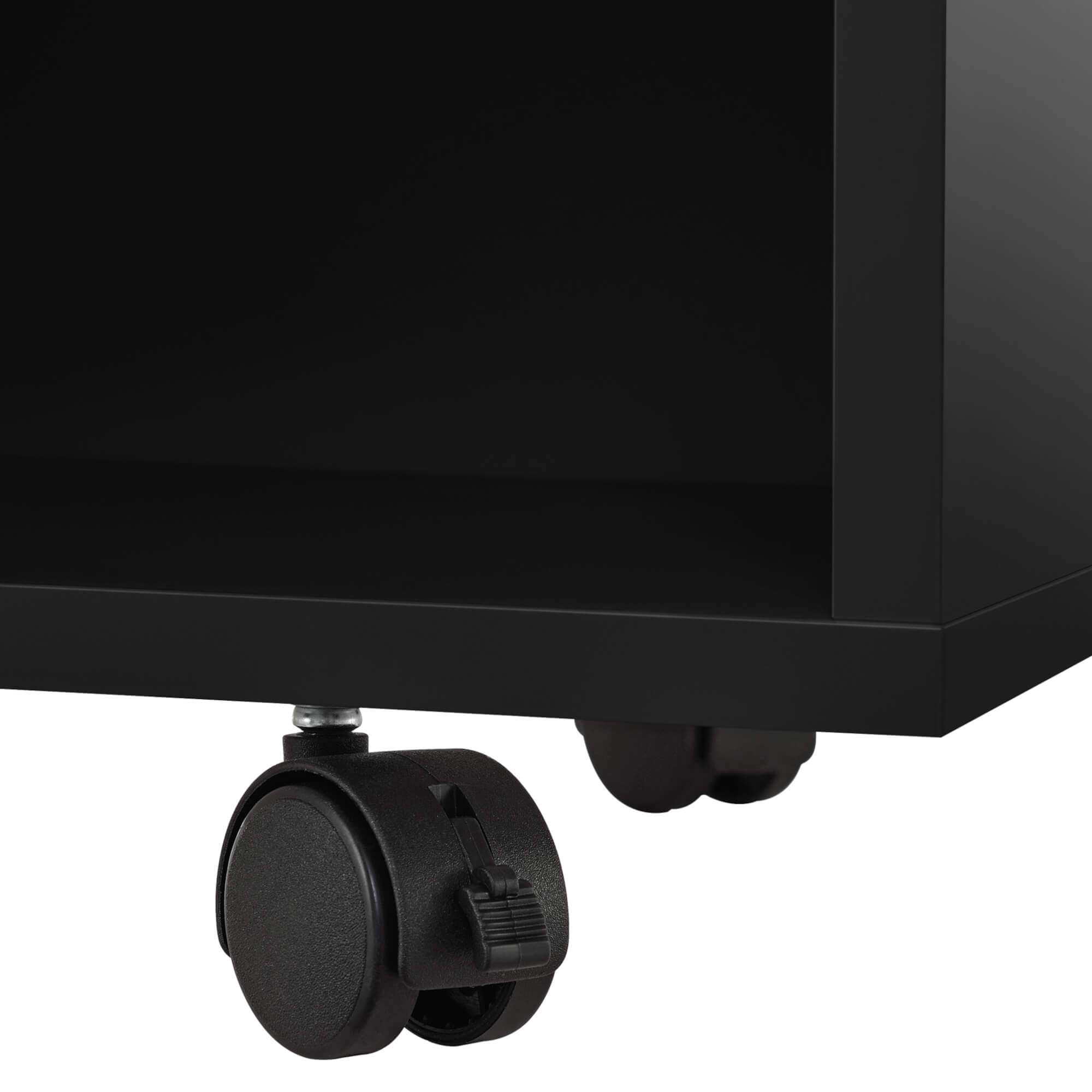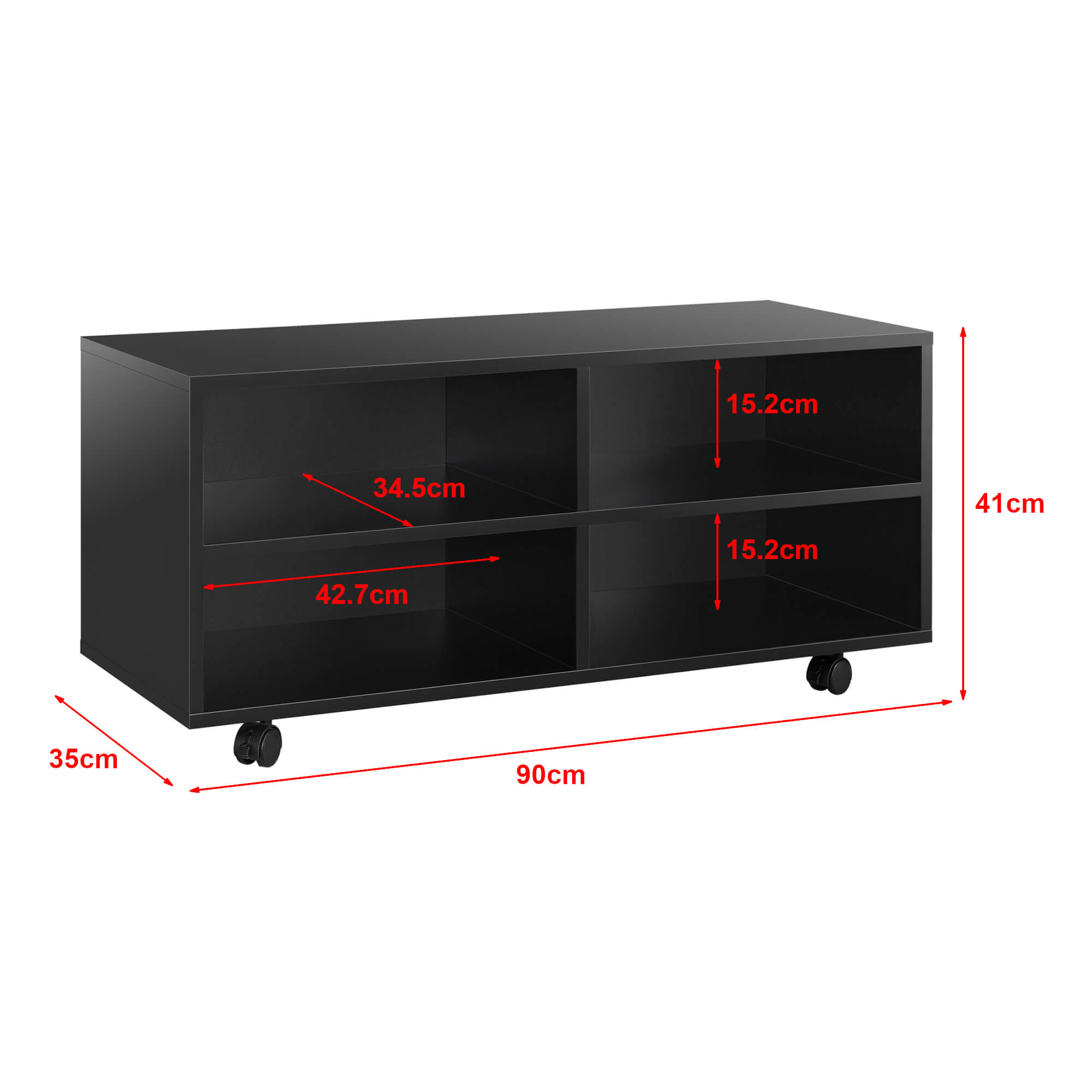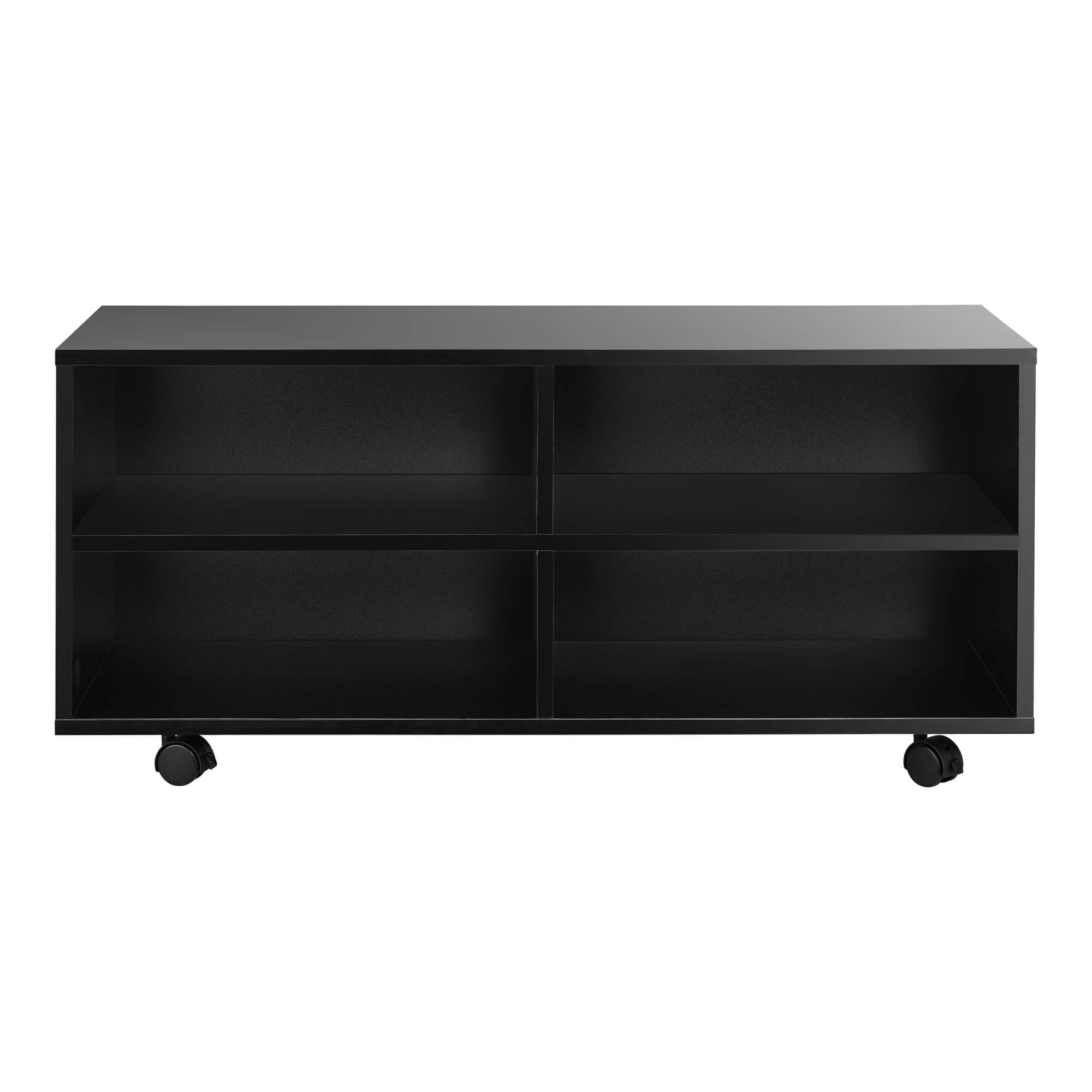 Dieses moderne und dekorative Lowboard verfügt über vier Ablagen und lässt sich durch die Rollen, schnell und einfach verschieben.