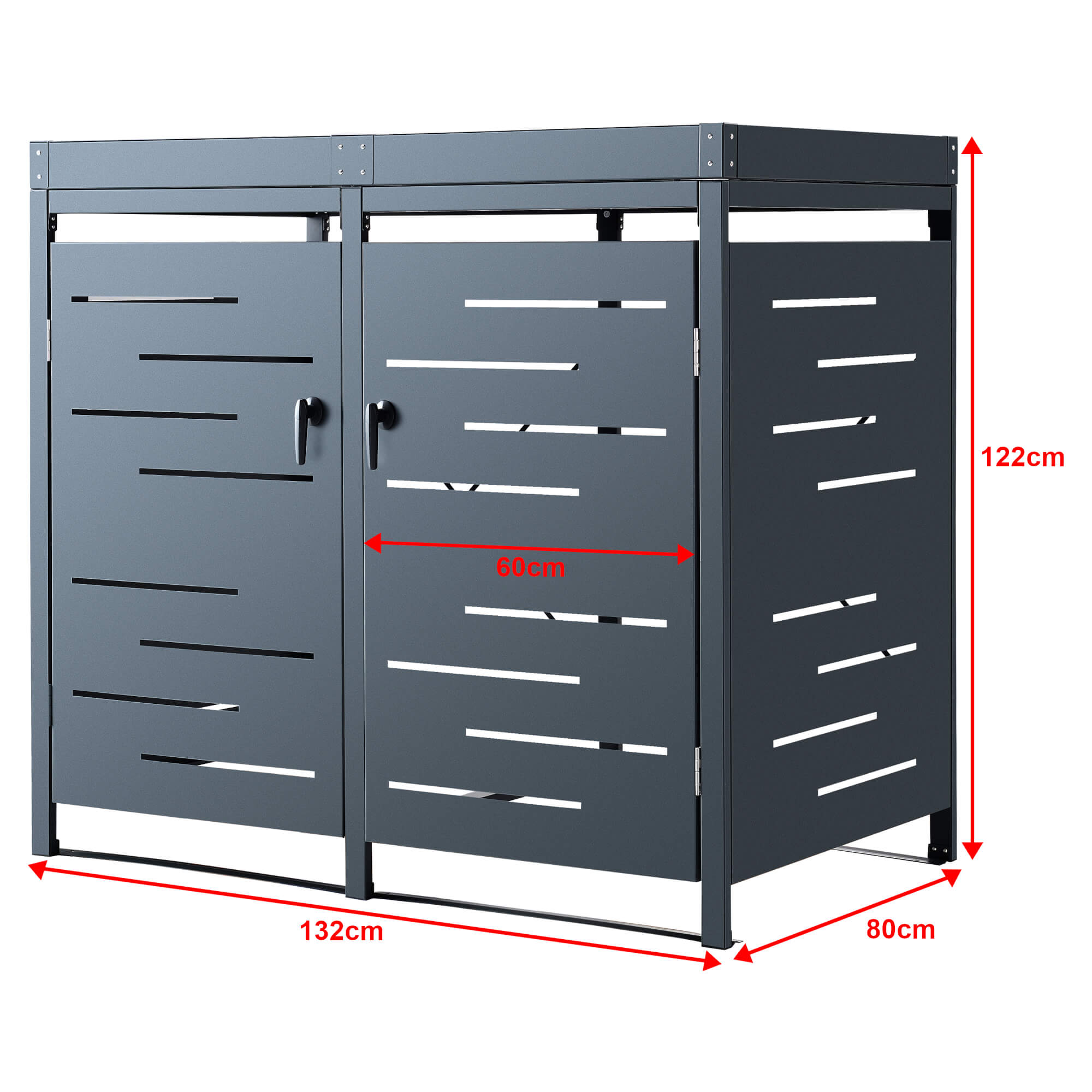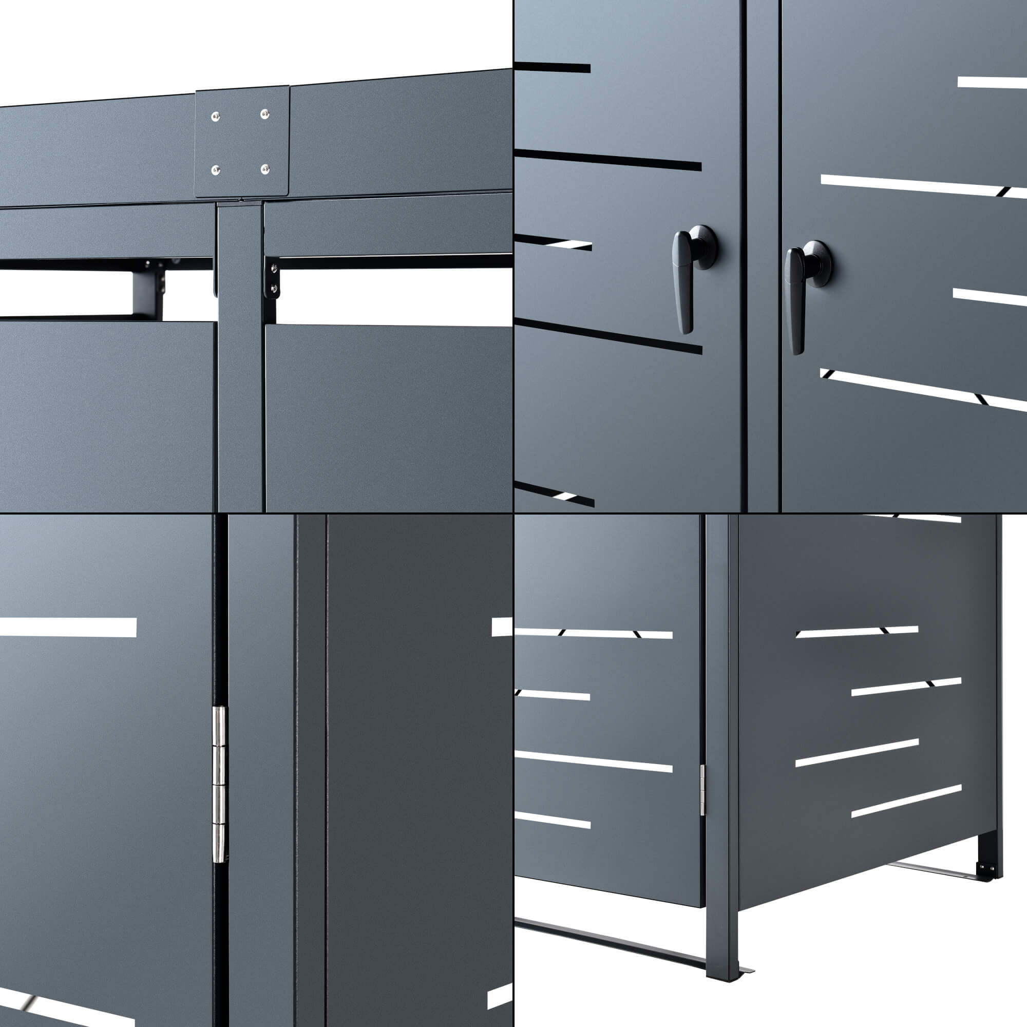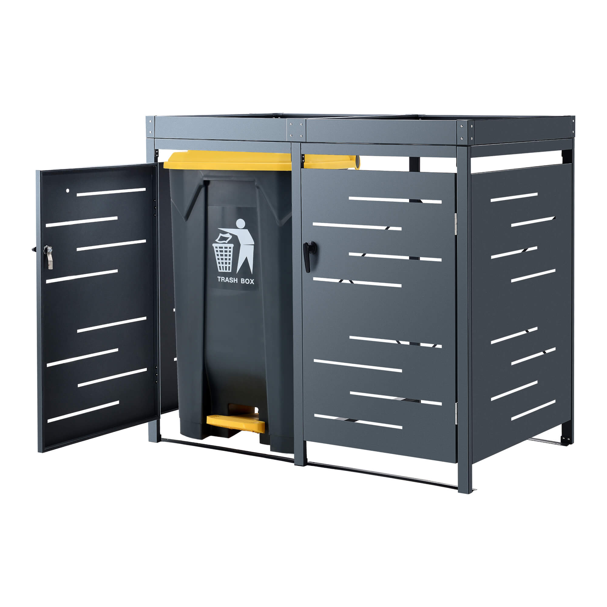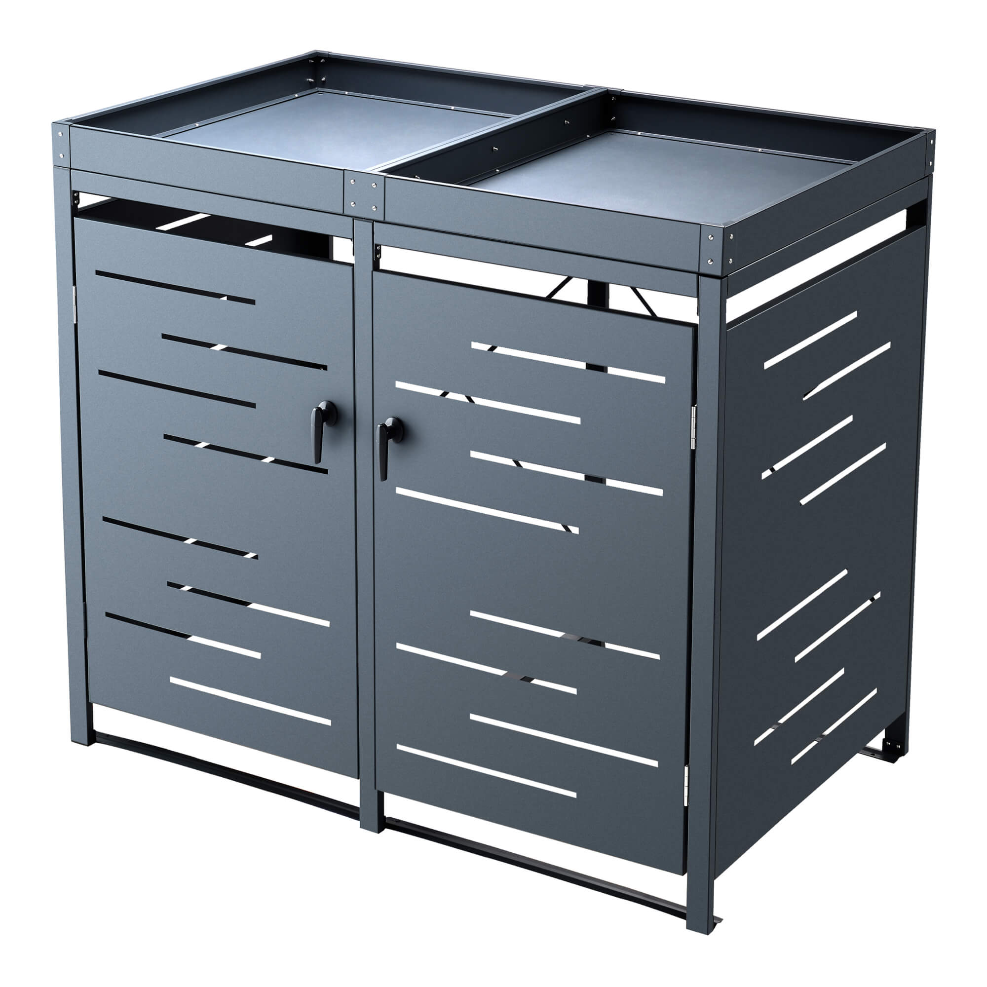 Die witterungsbeständige Mülltonnenverkleidung aus verzinktem Stahl eignet sich perfekt für Ihren Außenbereich. Sie ist abschließbar und schützt Ihre Abfallbehälter vor unbefugtem Zugriff. Darüber hinaus bietet die Verkleidung einen idealen Sichtschutz für Ihre Mülltonnen.