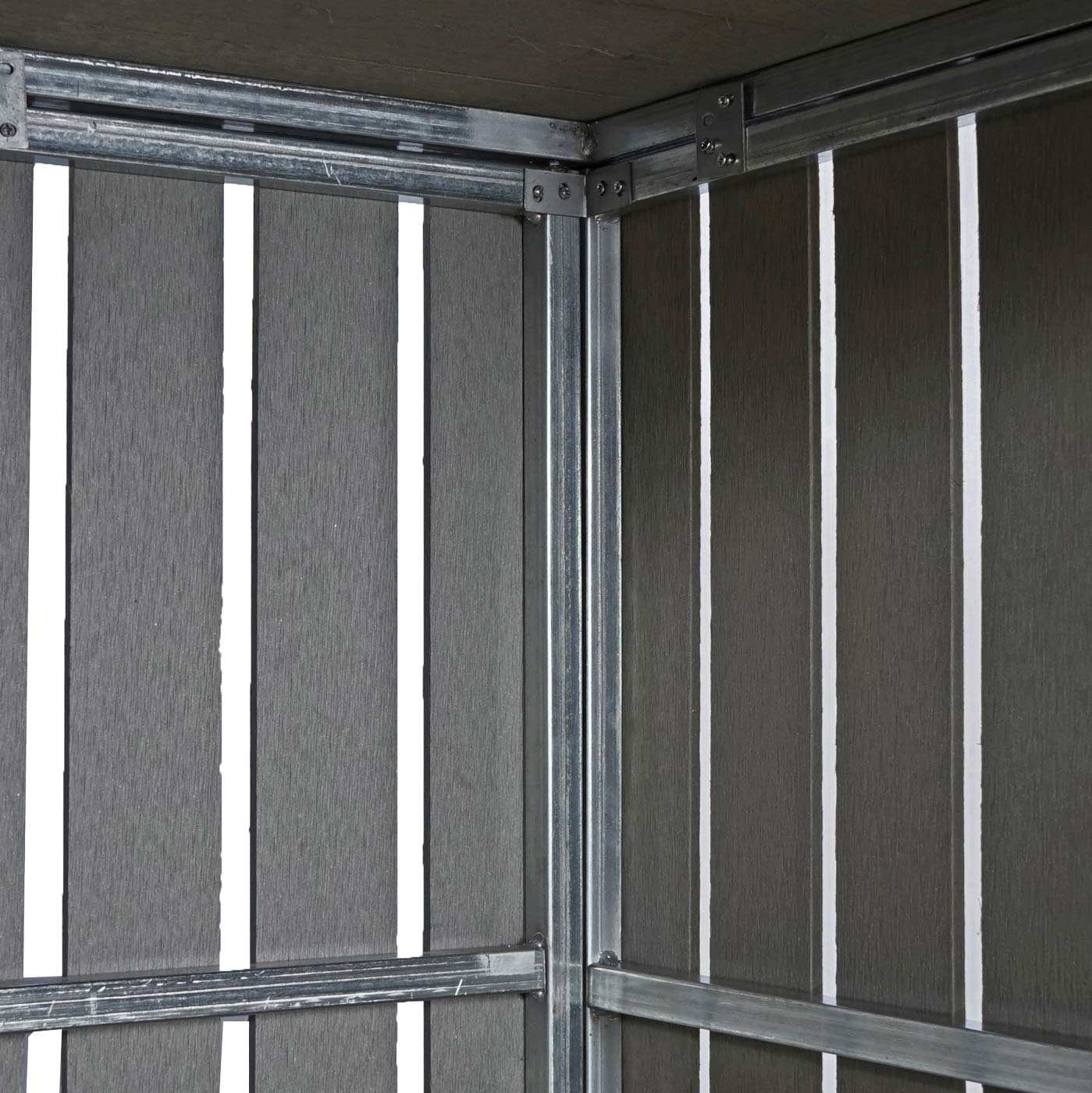 - Wände: WPC (ca. 60% Holz. 30% HDPE. 10% Zusatzstoffe) – robust. witterungsbeständig und pflegeleicht