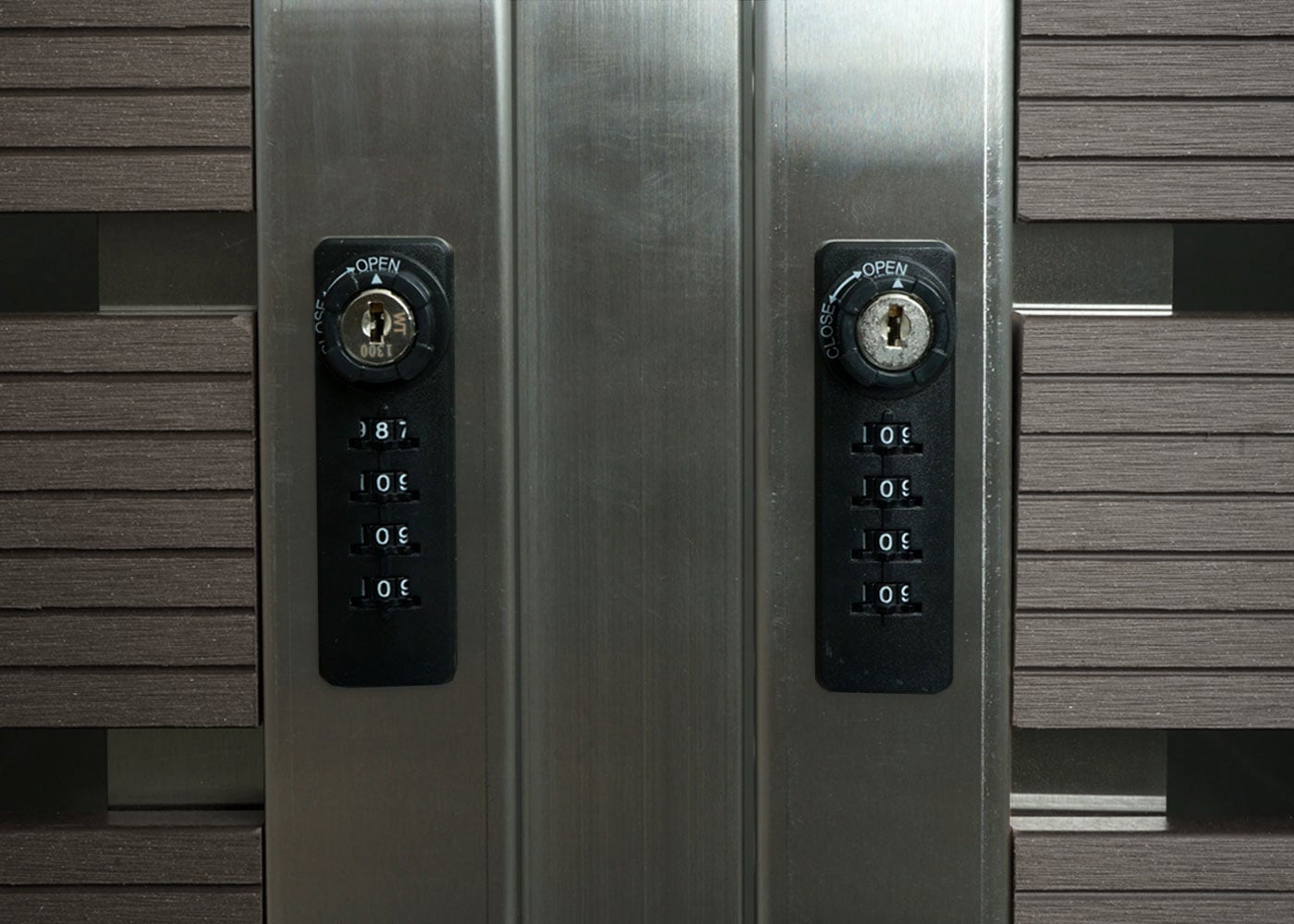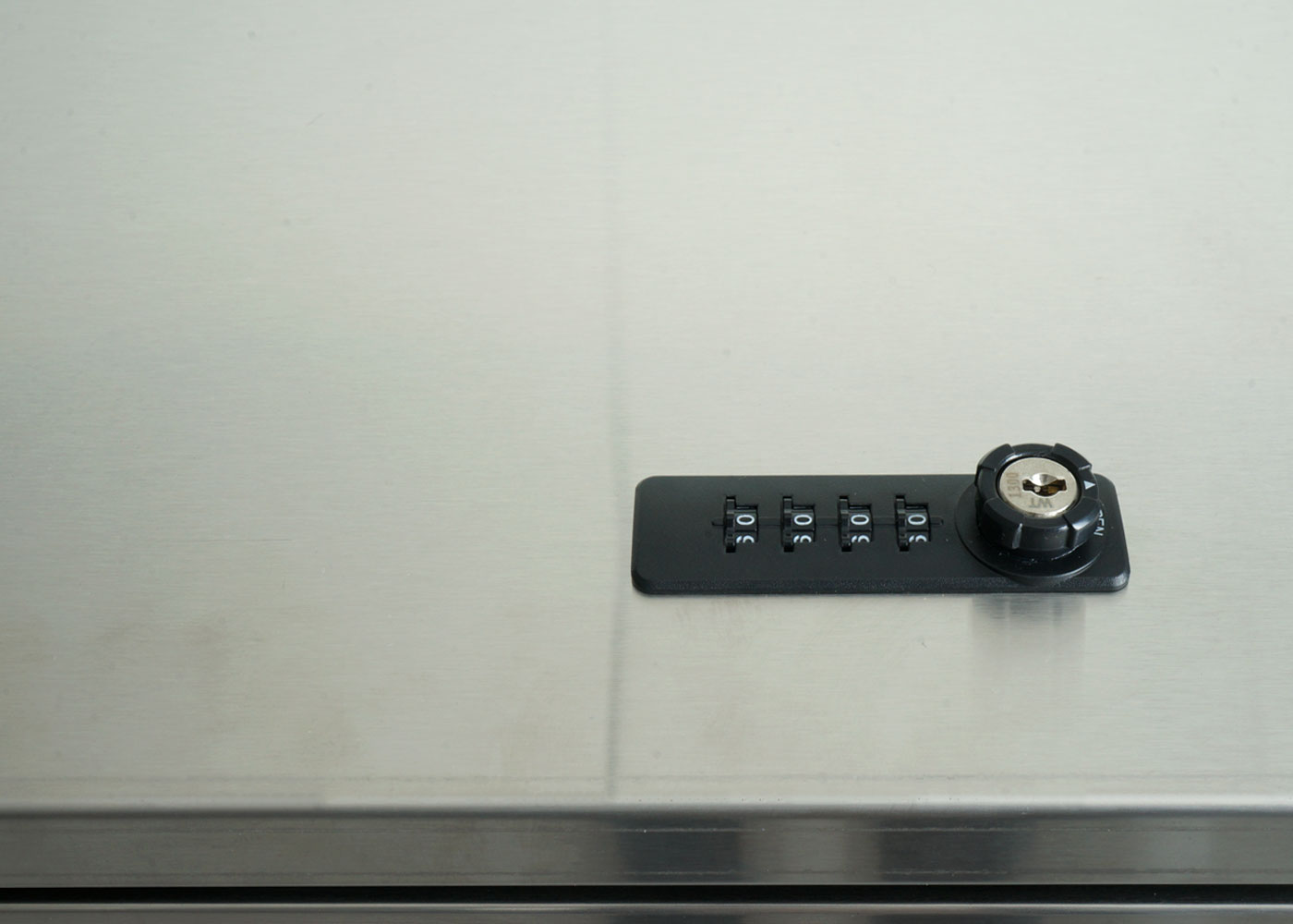 - Separate. abschließbare Türen und Deckel mit 4-stelligem Zahlenschloss (Sicherheitscode individuell einstellbar)