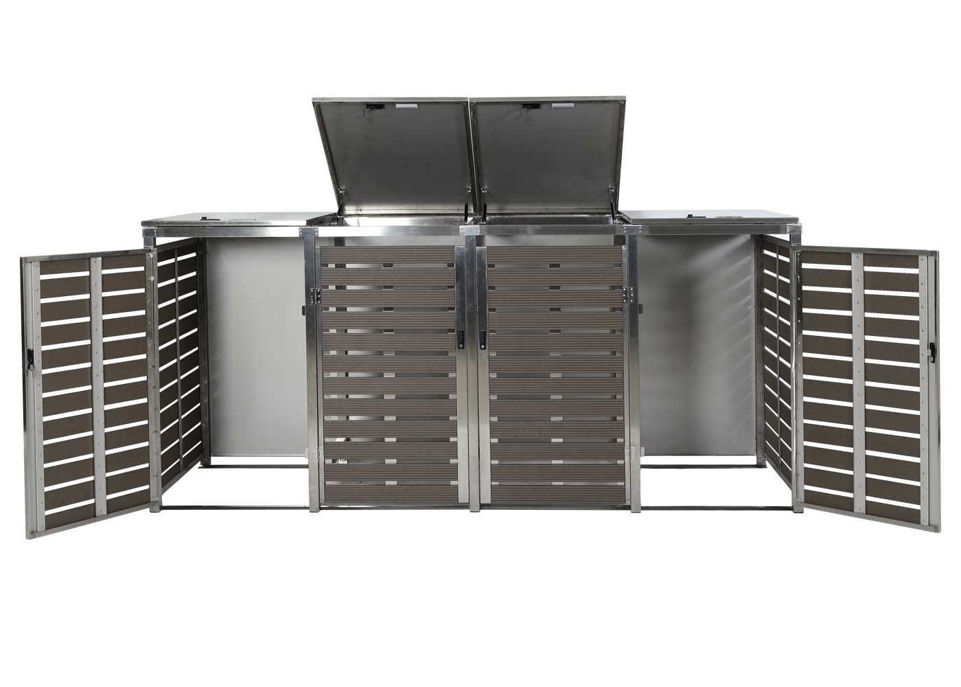 Moderne Mülltonnenbox für 80 bis 240 Liter – Stilvolle Mülltonnenverkleidung aus WPC & Edelstahl