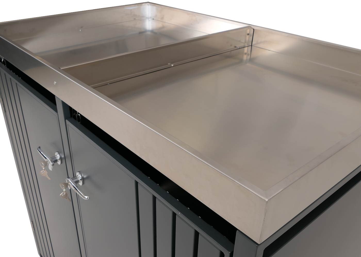 - Integrierte Kippvorrichtung für bequemes Entleeren der Tonnen