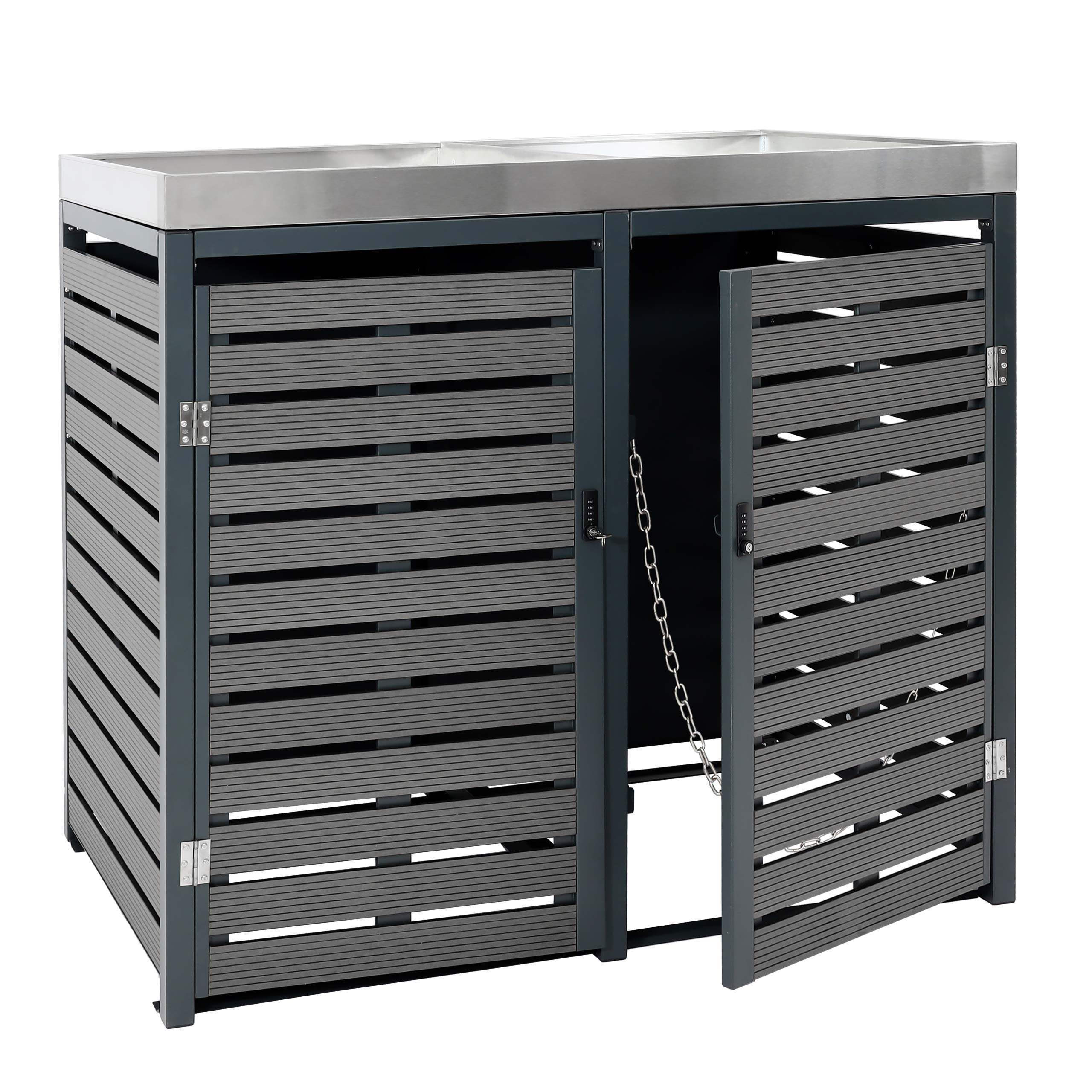 Mülltonnenbox mit Pflanzkasten aus WPC & Edelstahl. anthrazit