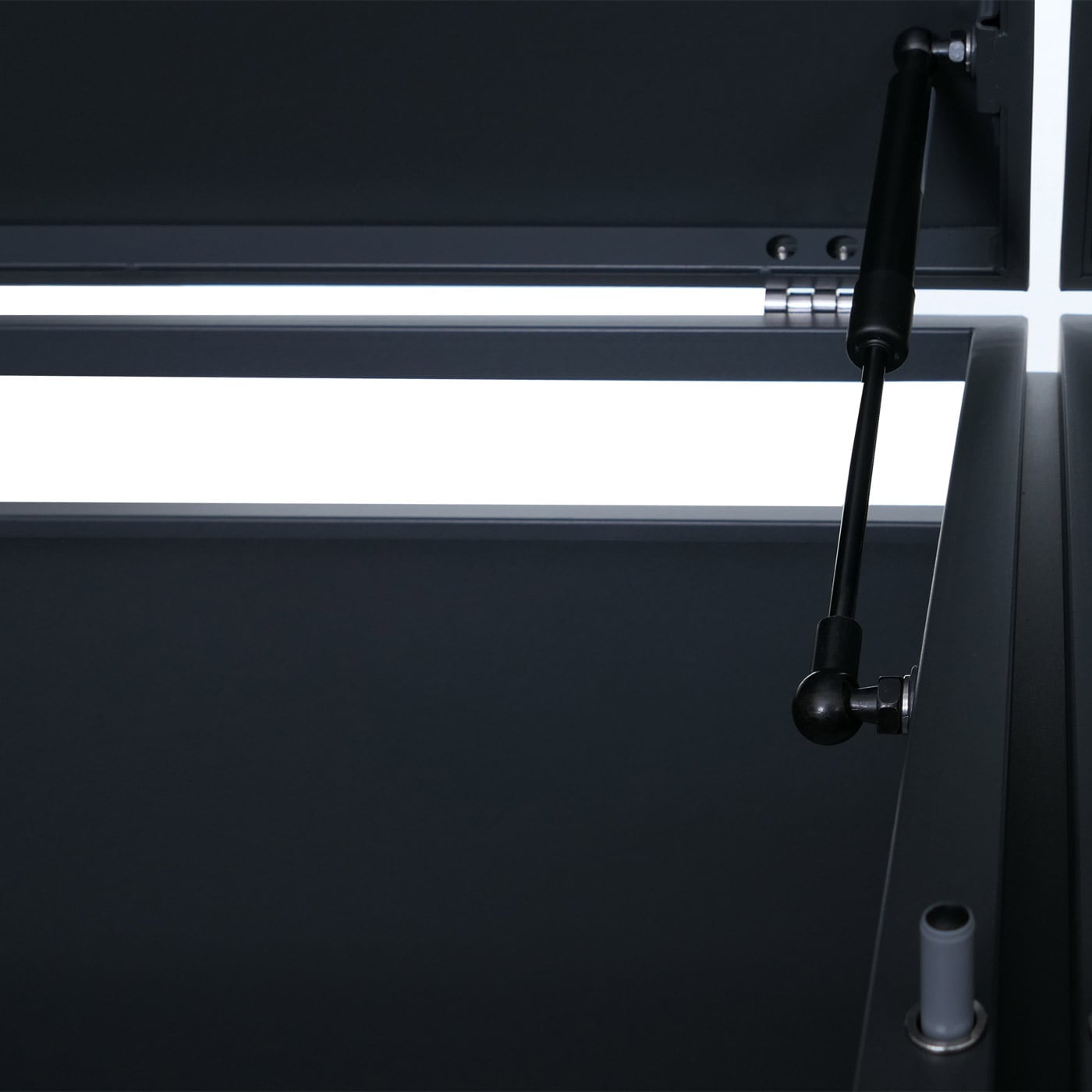 - Deckel bequem von oben zu öffnen mit Gasdruckfeder für sanftes Öffnen und Schließen