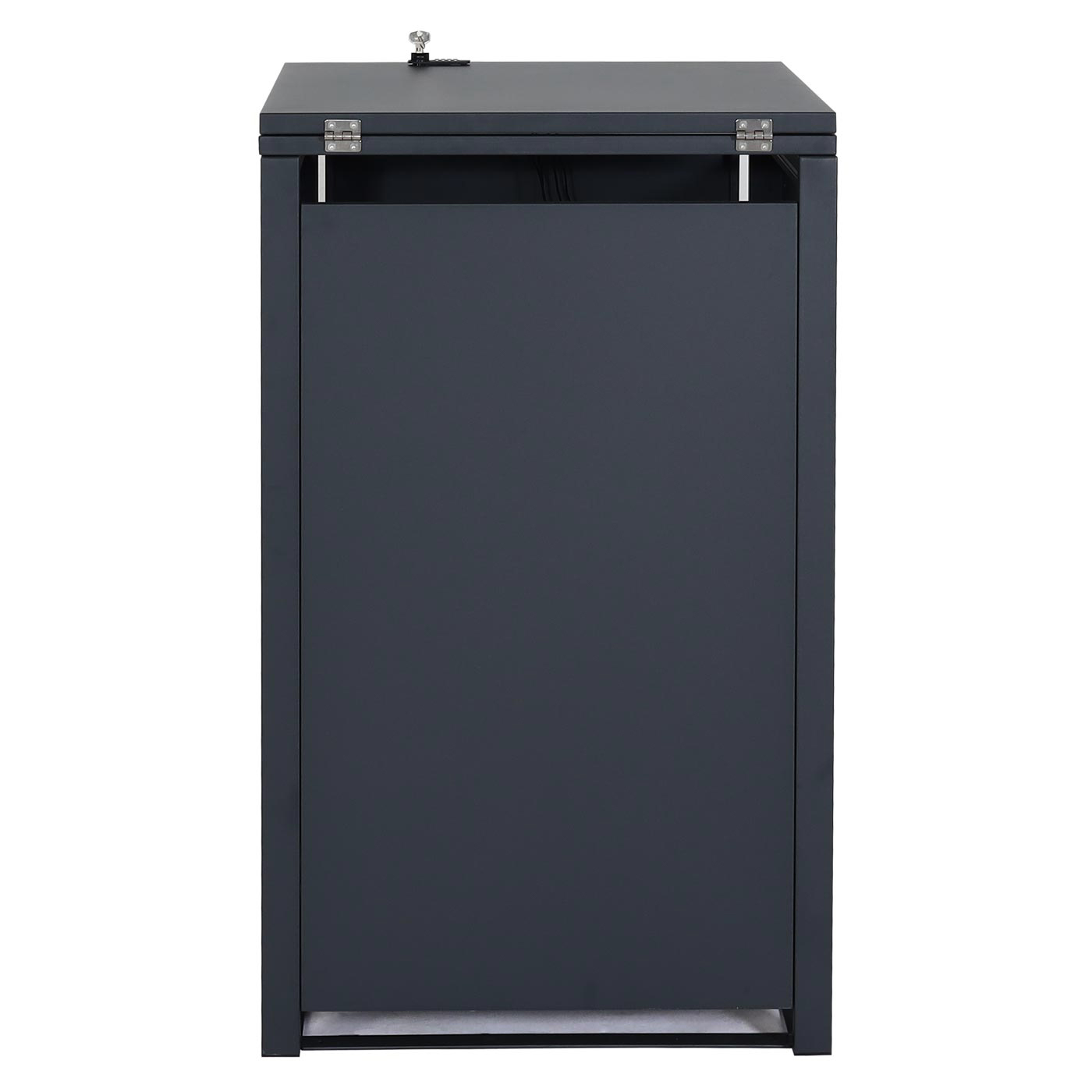 Verleihen Sie Ihrem Außenbereich ein gepflegtes Erscheinungsbild und verstecken Sie unschöne Mülltonnen elegant mit dieser hochwertigen Mülltonnenverkleidung. Die stabile Stahlkonstruktion schützt Ihre Mülltonne nicht nur vor Wind und Wetter. sondern sorgt auch für ein aufgeräumtes Gesamtbild vor Haus. Garage oder im Garten. Die durchdachte Bauweise mit praktischer Aufhängung ermöglicht eine besonders komfortable Bedienung und ist flexibel erweiterbar.