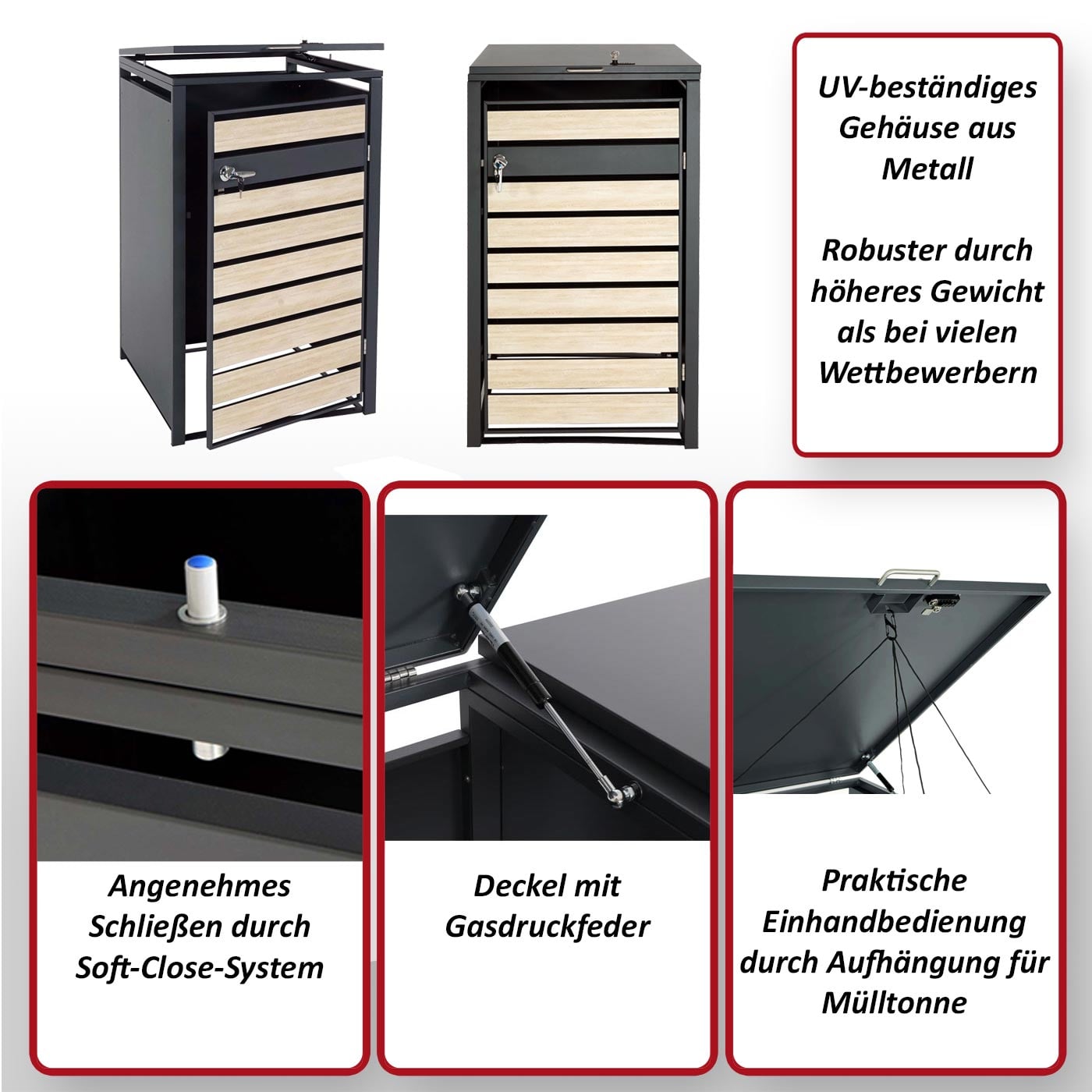 Mülltonnenverkleidung aus Stahl – Wetterfeste Mülltonnenbox für 80-240 Liter
