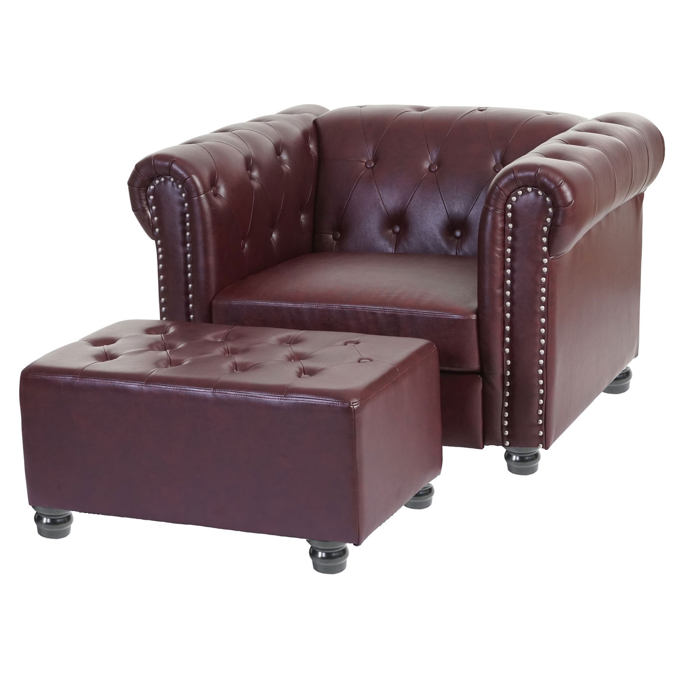 Luxus Ottomane Sitzhocker Chesterfield 41x75x46cm Kunstleder ~ runde Füsse rot-braun
