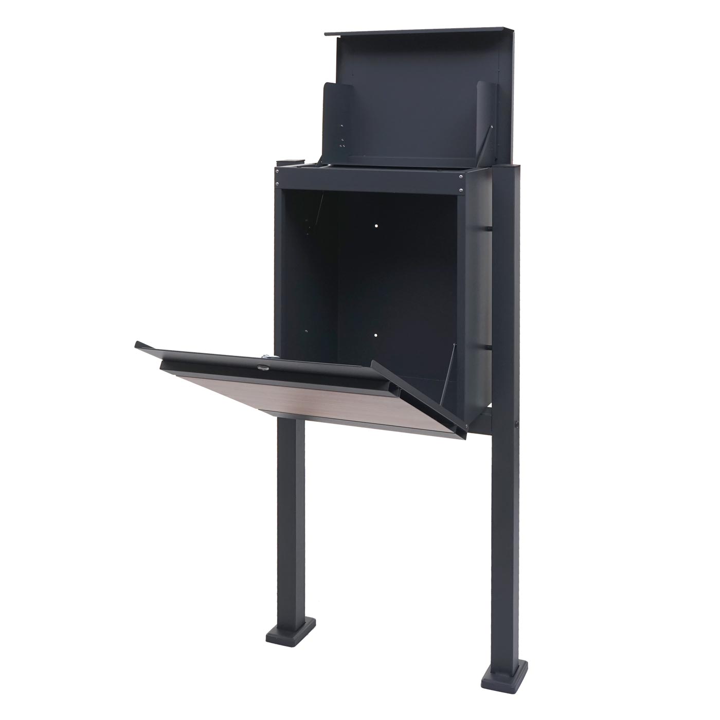 – Dieser Paketkasten inklusive Ständer zeichnet sich besonders durch sein großes Innenfach aus und ist für Päckchen, Großbriefe und Büchersendungen geeignet. Die Größe der Postbox ist auch ideal für einen professionellen Gebrauch in Ihrer Firma.