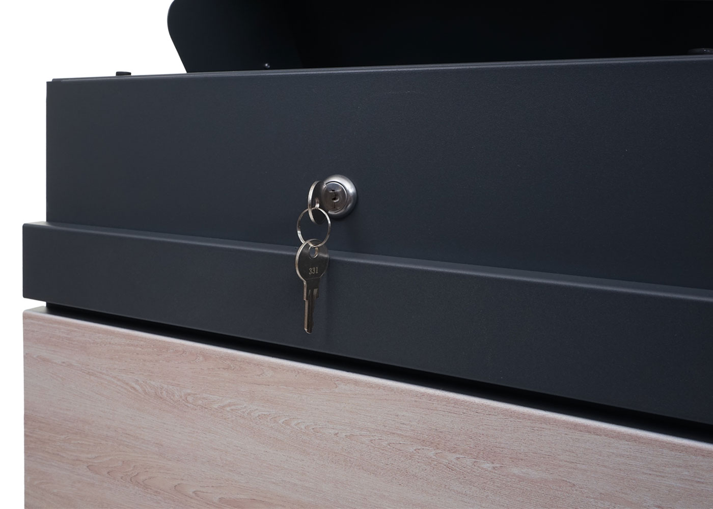 – Dreifachschutz für Ihre Post! Ein Zylinderschloss, die Tiefe des Gewerbe-Briefkastens, wie auch ein besonderer Eingriffschutz beim Einwurf sichert Ihre Post. Die Pakete werden aufgelegt und durch das Schließen in den Kasten nach unten befördert.