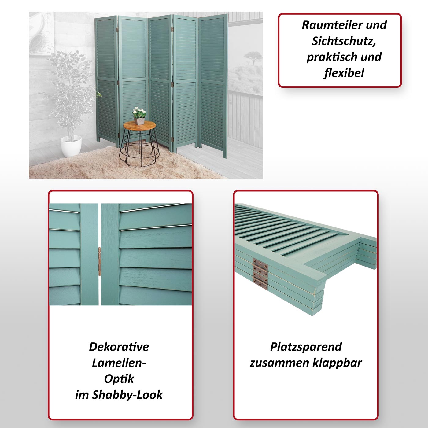 Sie wollen Ihr Zimmer unkompliziert unterteilen, verkleinern oder Bereiche abtrennen und gleichzeitig einen modischen Akzent setzen? Kein Problem. Platzieren Sie unseren Raumteiler im Eingangsbereich, im Wohn-/Esszimmer oder im Schlafzimmer und verleihen dem Raum ein gemütliches, wohnliches Ambiente.