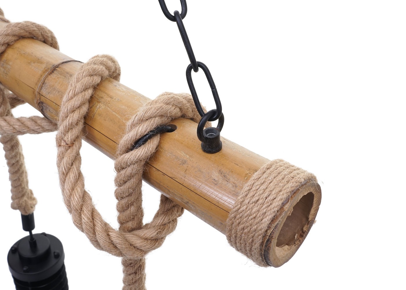 – Diese Deckenpendelleuchte im Industrie-Design ist in Ihrem Wohnzimmer ein echter Blickfang und wird alles zum Strahlen bringen! Mit der Materiakomination aus Bambus und Metall setzt die Lampe extravagante Akzente in Ihre heimischen vier Wände.
