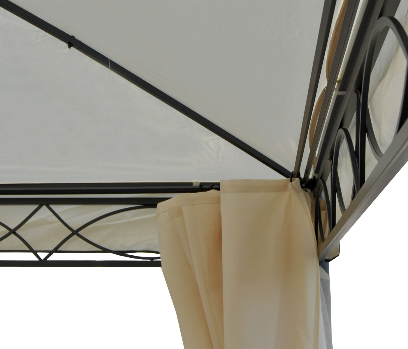 Pergola Cadiz, Garten Pavillon, stabiles 7cm-Gestell mit Seitenwand + Moskitonetz ~ creme 4x4m