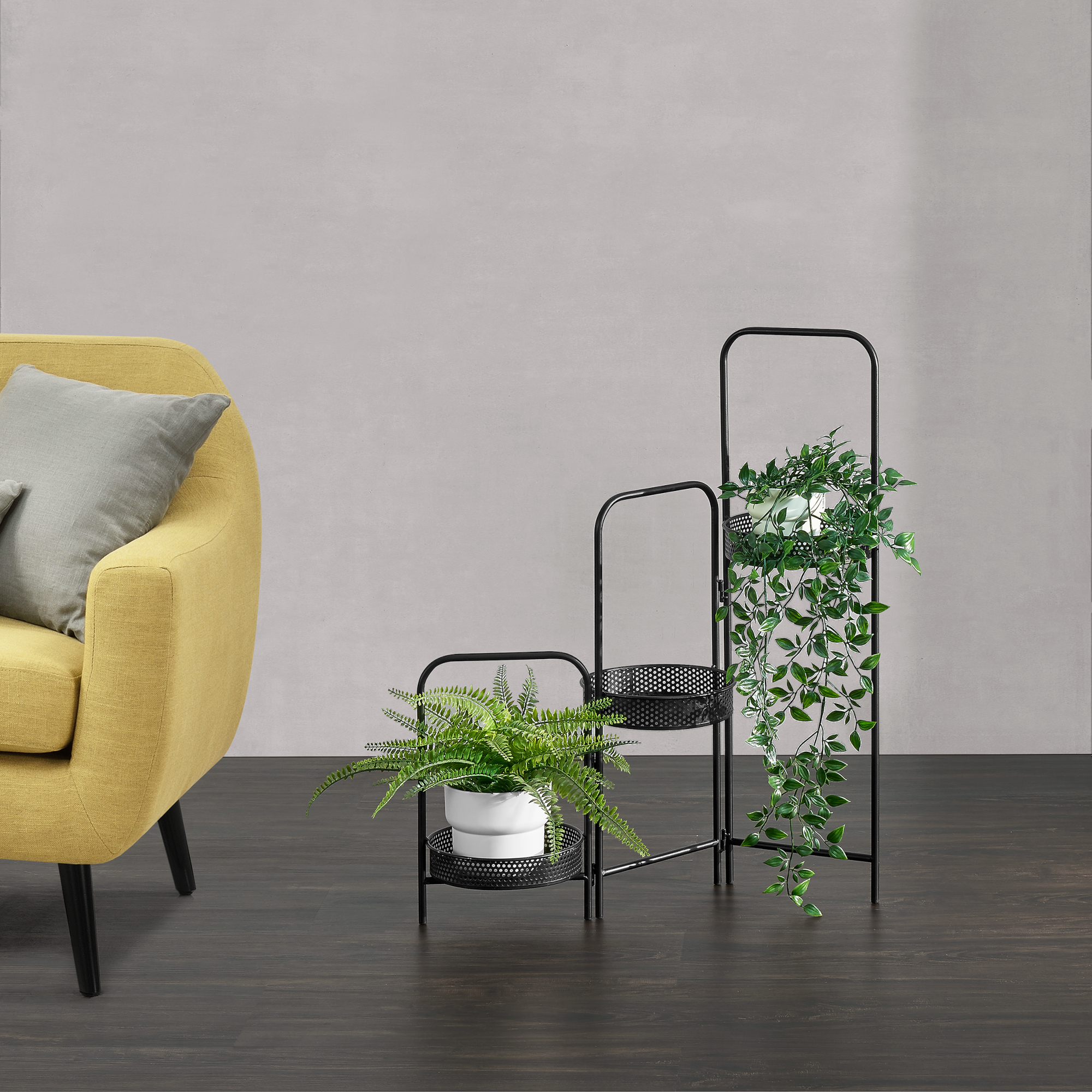 Dieser ausgefallene Pflanzständer mit 3 Pflanzschalen aus Metall ist klappbar und dadurch sehr platzsparend. Durch sein zeitloses und dekoratives Design ist er ein echter Hingucker in Ihrem Wohnbereich.