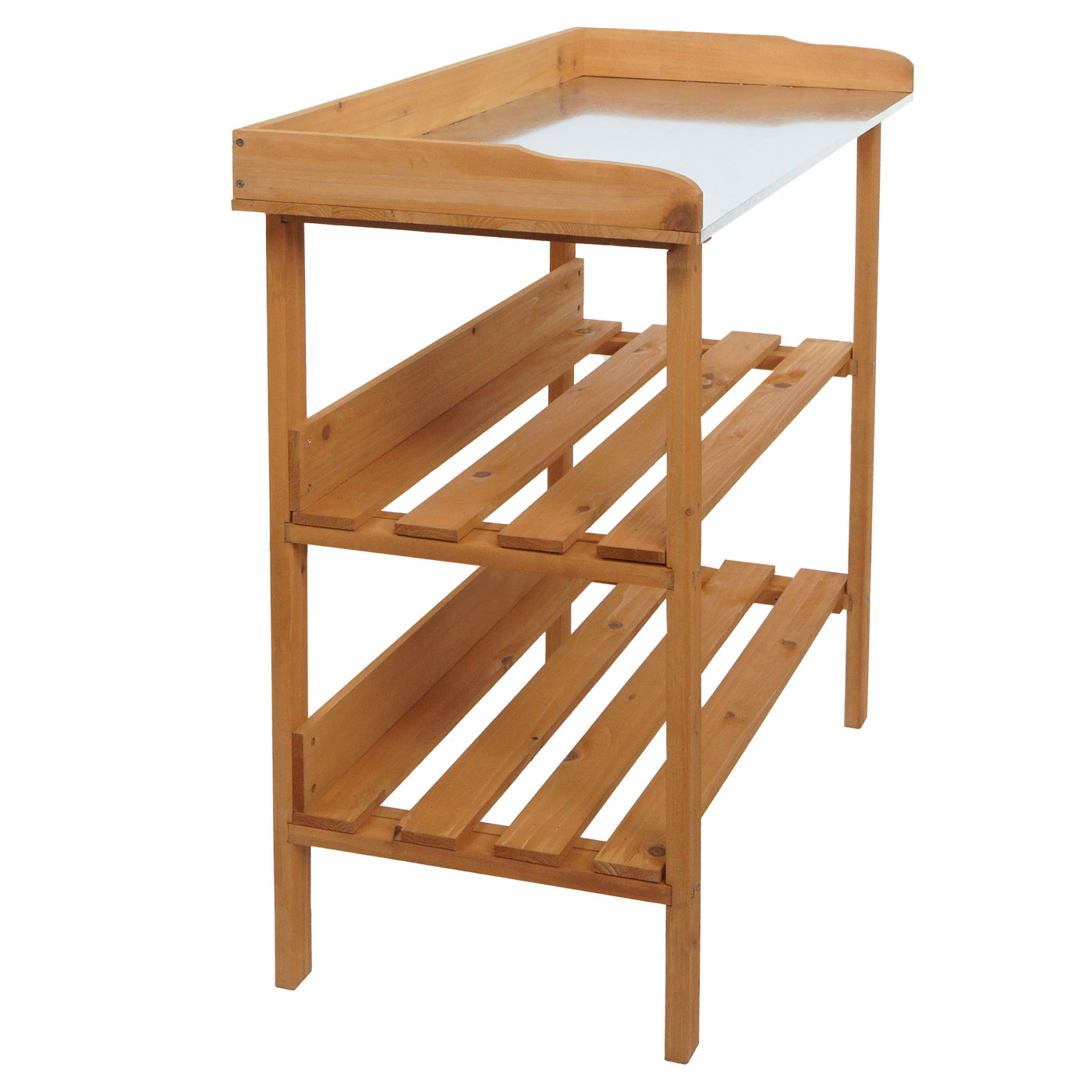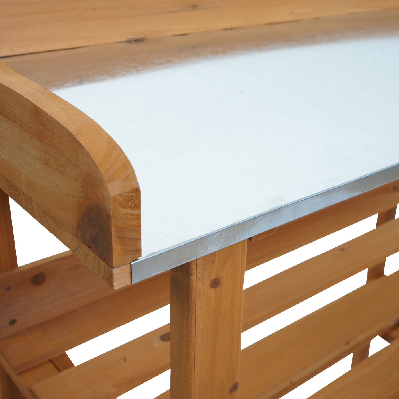 Bringen Sie Ihre Gartenarbeit auf das nächste Level – mit diesem funktionalen Pflanztisch aus FSC®-zertifiziertem Tannenholz. Die stabile. wasserfeste Arbeitsplatte aus verzinktem Eisenblech bietet optimale Voraussetzungen zum Umtopfen. Säen und Pflegen Ihrer Pflanzen. Die angenehme Arbeitshöhe schont Ihren Rücken und ermöglicht effizientes. komfortables Arbeiten im Freien.