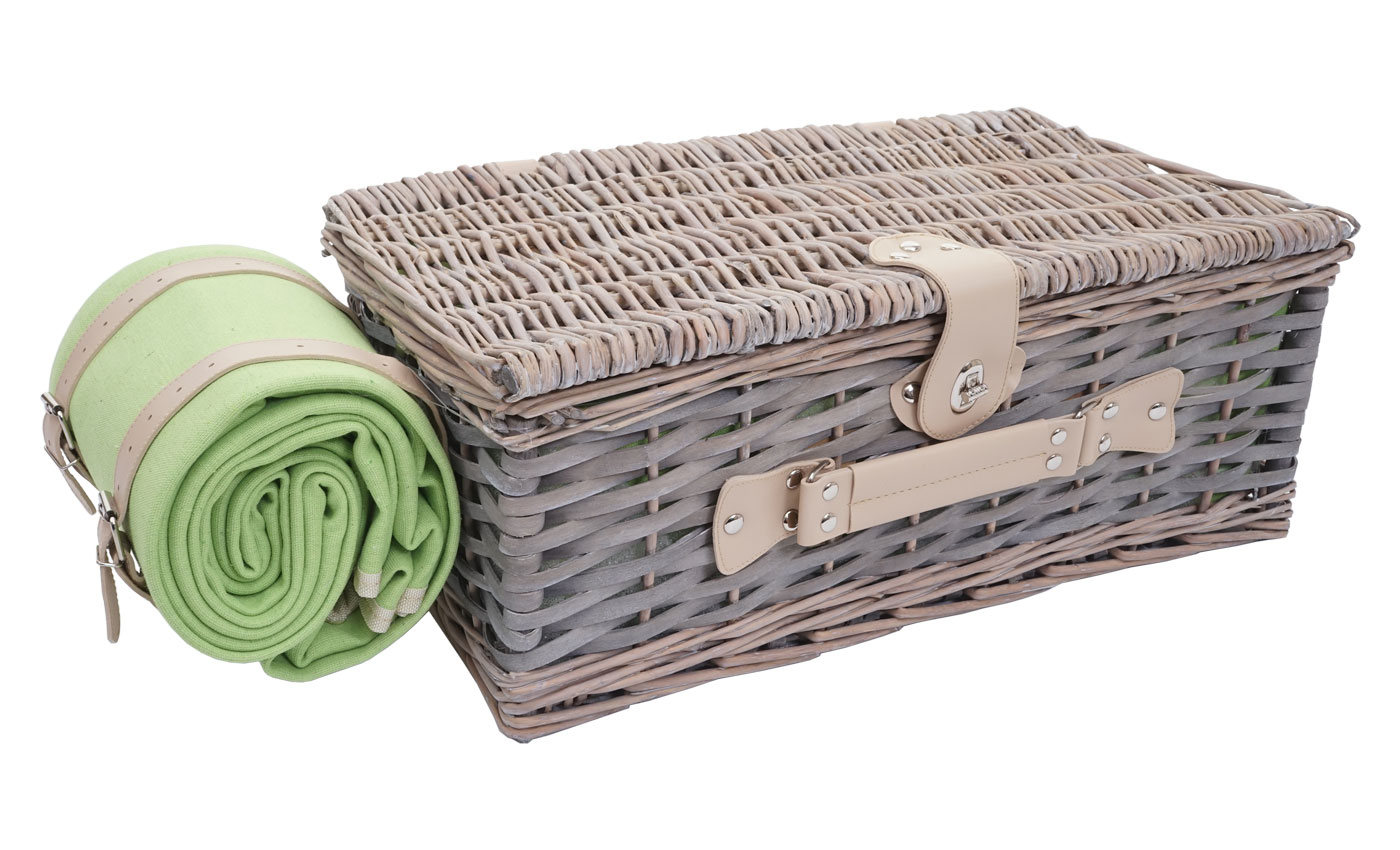 Picknickkorb Weidenkorb Set für 4 Personen mit Decke grün
