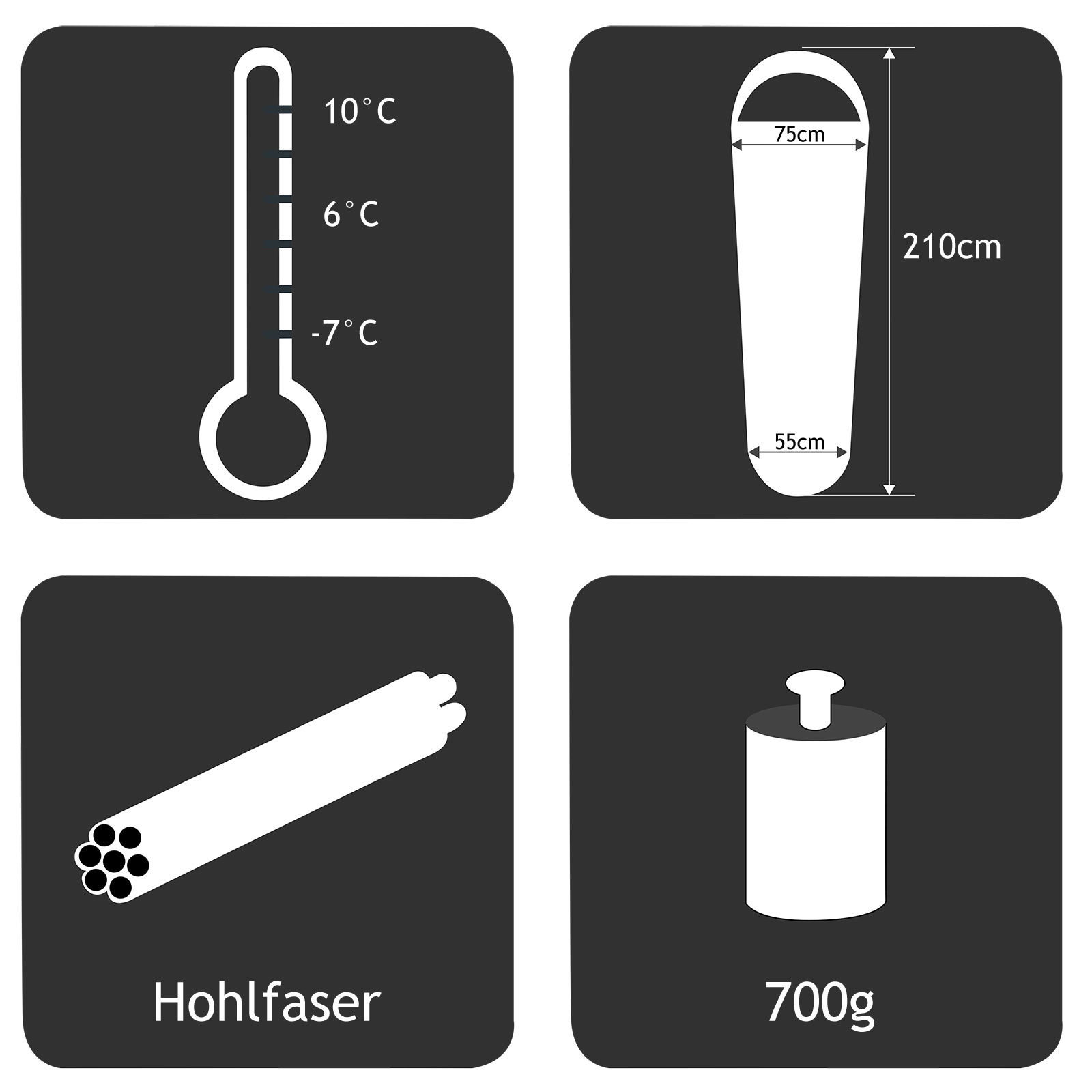 Mumienschlafsack mit Wärmeleiste + 2-Wege-Reißverschluss – 210x75cm – nur 700g