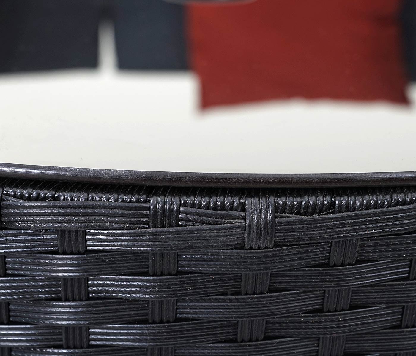 Poly-Rattan Garnitur rund, Sitzgruppe ~ schwarz, Polster dunkelgrau, Kissen terrakotta