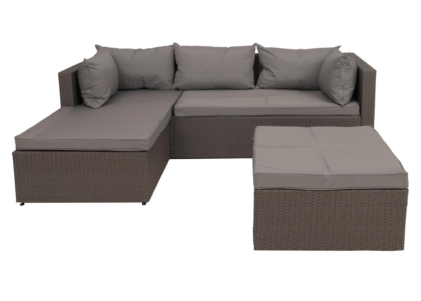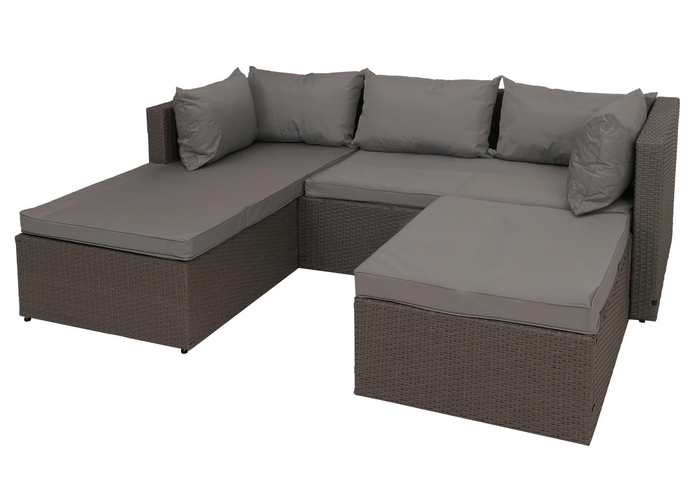 - 1x Poly-Rattan Lounge-Set mit flexibler Ottomane