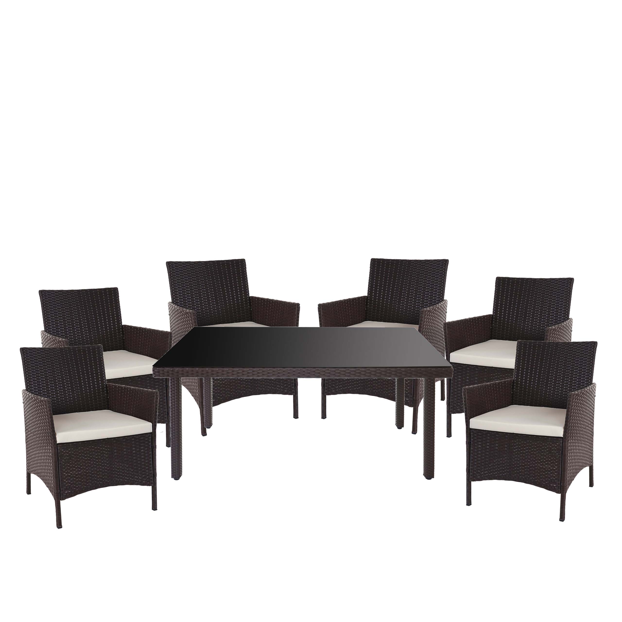 Genießen Sie entspannte Stunden im Freien mit dieser eleganten Sitzgruppe. Das stilvolle Gartenmöbel Set besteht aus einem großen Tisch mit Glasplatte und sechs bequemen Sesseln. Das zeitlose Design fügt sich harmonisch in jede Umgebung ein und überzeugt durch Komfort. Langlebigkeit und hochwertige Verarbeitung.