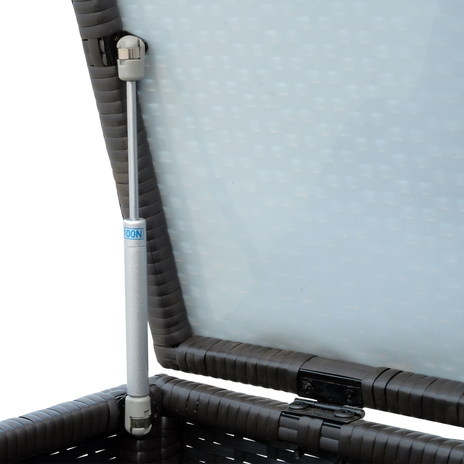 Zum sicheren Verstauen von Kissen oder Sitzauflagen Ihrer Gartenmöbel wird eine hochwertige Gartenbox benötigt. Unsere Kissenbox besteht aus pulverbeschichtetem Metallgestell mit in Handarbeit verarbeitetem Polyrattan-Geflecht und besitzt somit hohe Stabilität wie auch optimale Witterungsbeständigkeit. Durch die Gasdruckfedern lässt sich der Deckel einfach öffnen und schließen. Egal ob im Ihrem Garten oder auf dem Balkon, unsere Auflagenbox ist überall ein eleganter Ordnungsbringer und ergänzt vorhandene Rattangarnituren optisch perfekt.