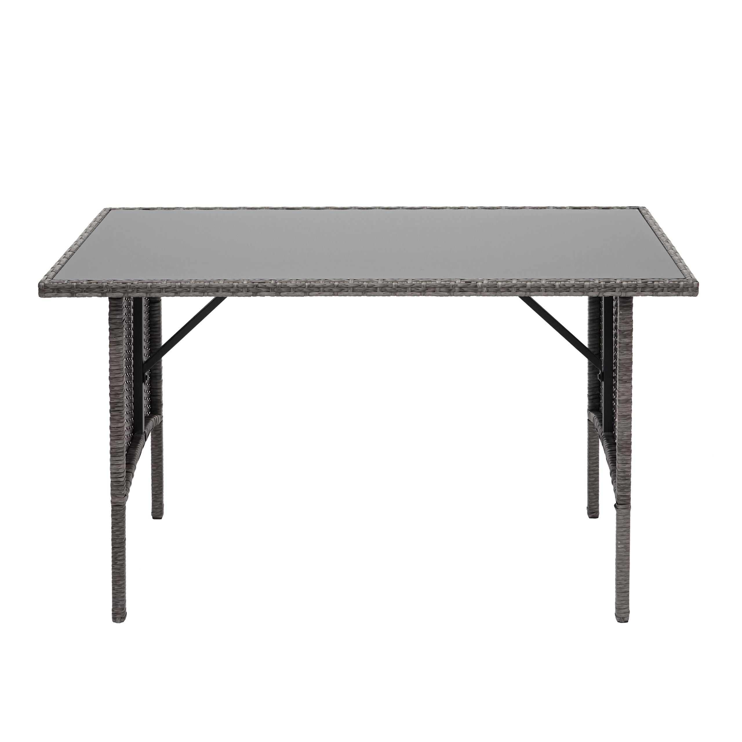 Dieser Esstisch ist schlicht, solide und lässt sich beliebig mit anderen Gartenmöbeln kombinieren. Das Rattan ist aus durchgehendem Flechtwerk gefertigt und neigt nicht zum Fasern. Gut verarbeitet, ist dieses Produkt der ideale Anlaufpunkt für alle, die ein Plätzchen mit dem gewissen Etwas suchen. Egal, ob im Garten, Wohnzimmer oder im Wintergarten – dieser zeitlose Tisch gibt immer und überall eine gute Figur ab.