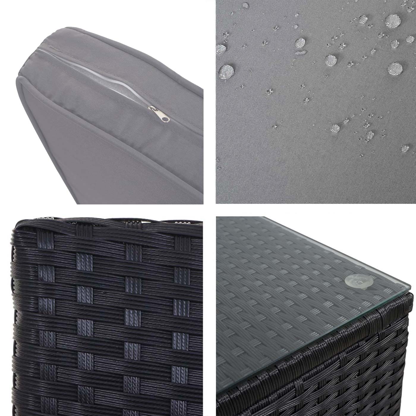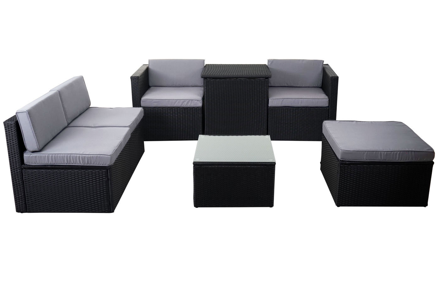 Rattan Lounge Sitzgruppe mit extra Kissenbox Anthrazit Kissen hellgrau