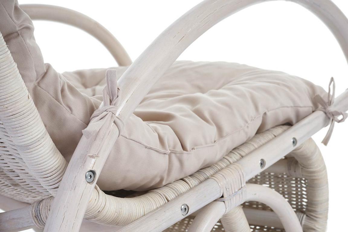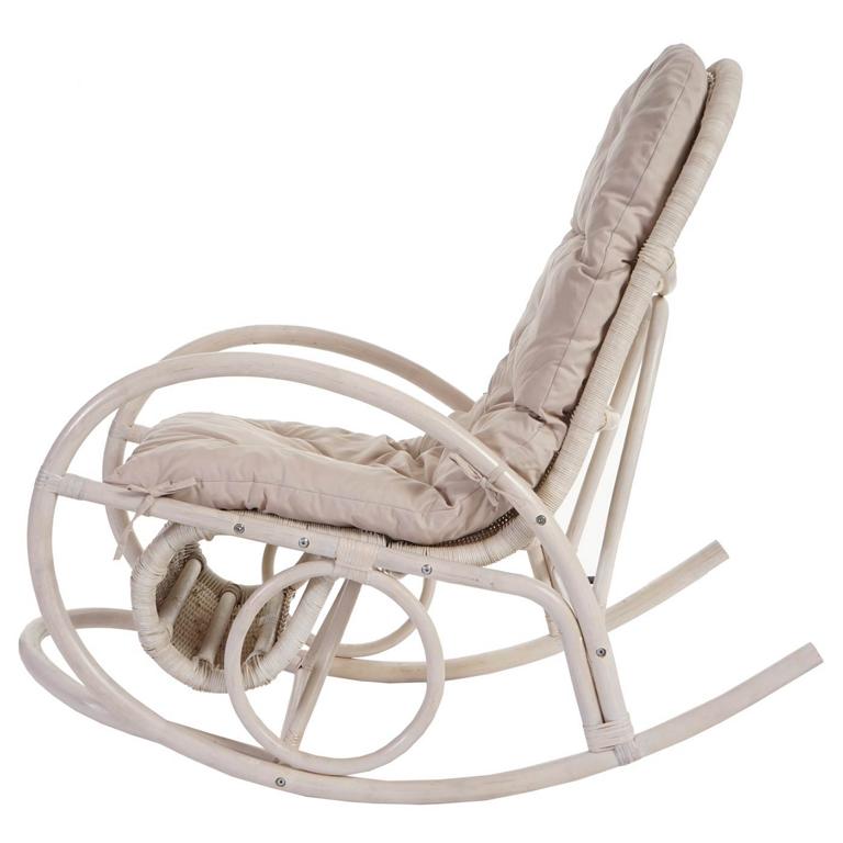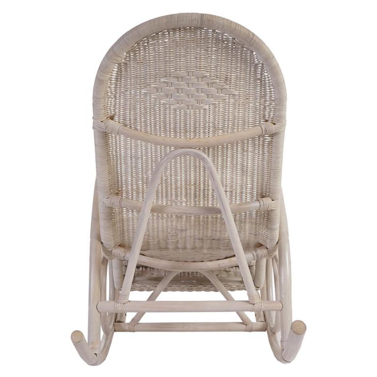 Retro Schaukelstuhl Rattan Weiß Gewischt, Knopfsteppung & Wippstopper