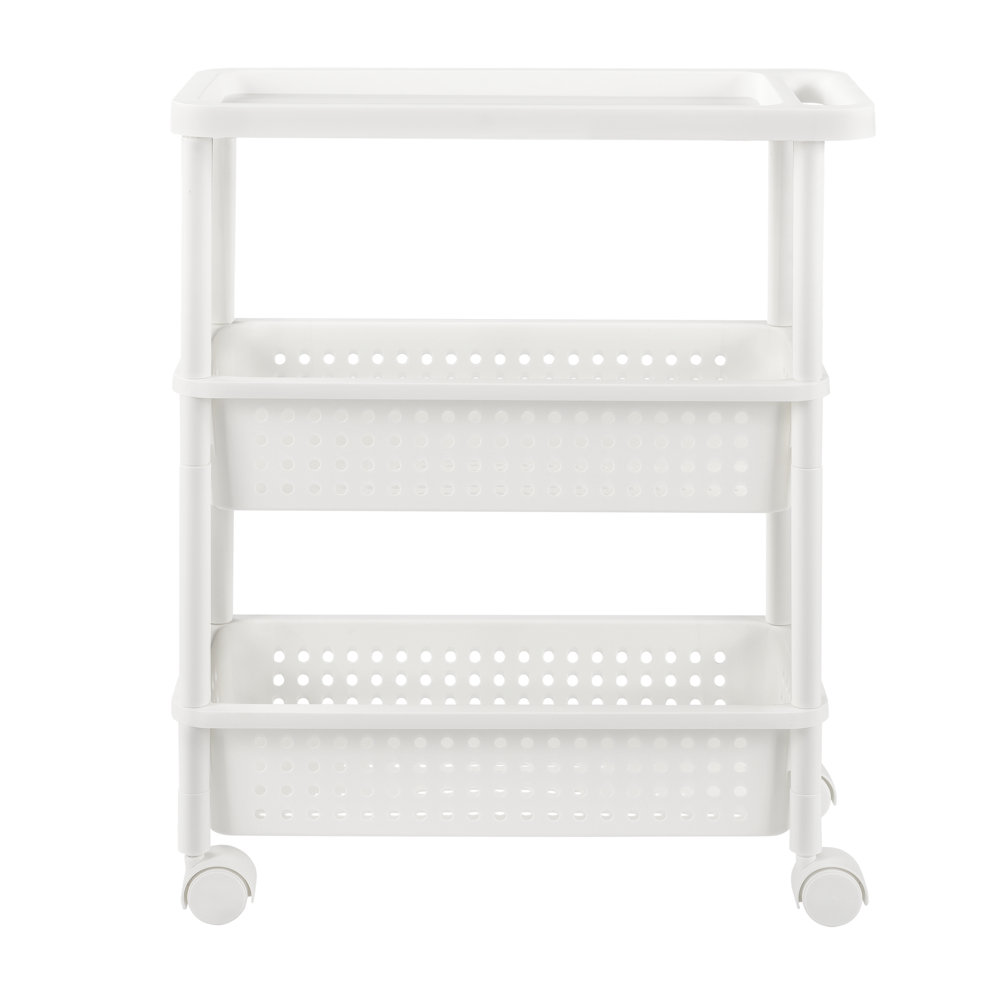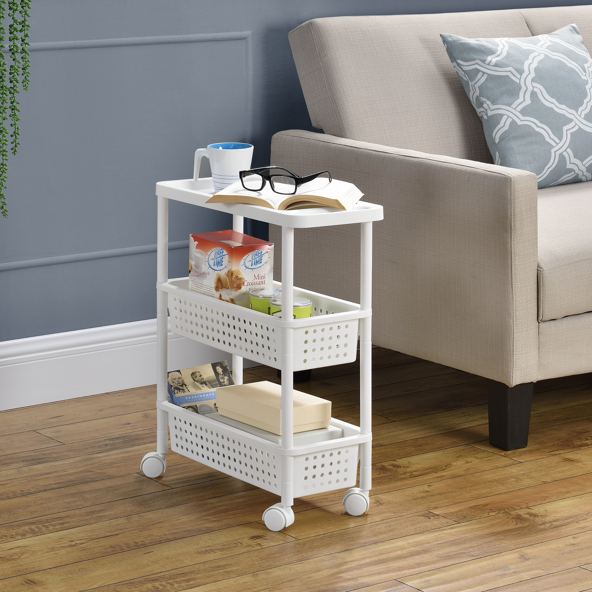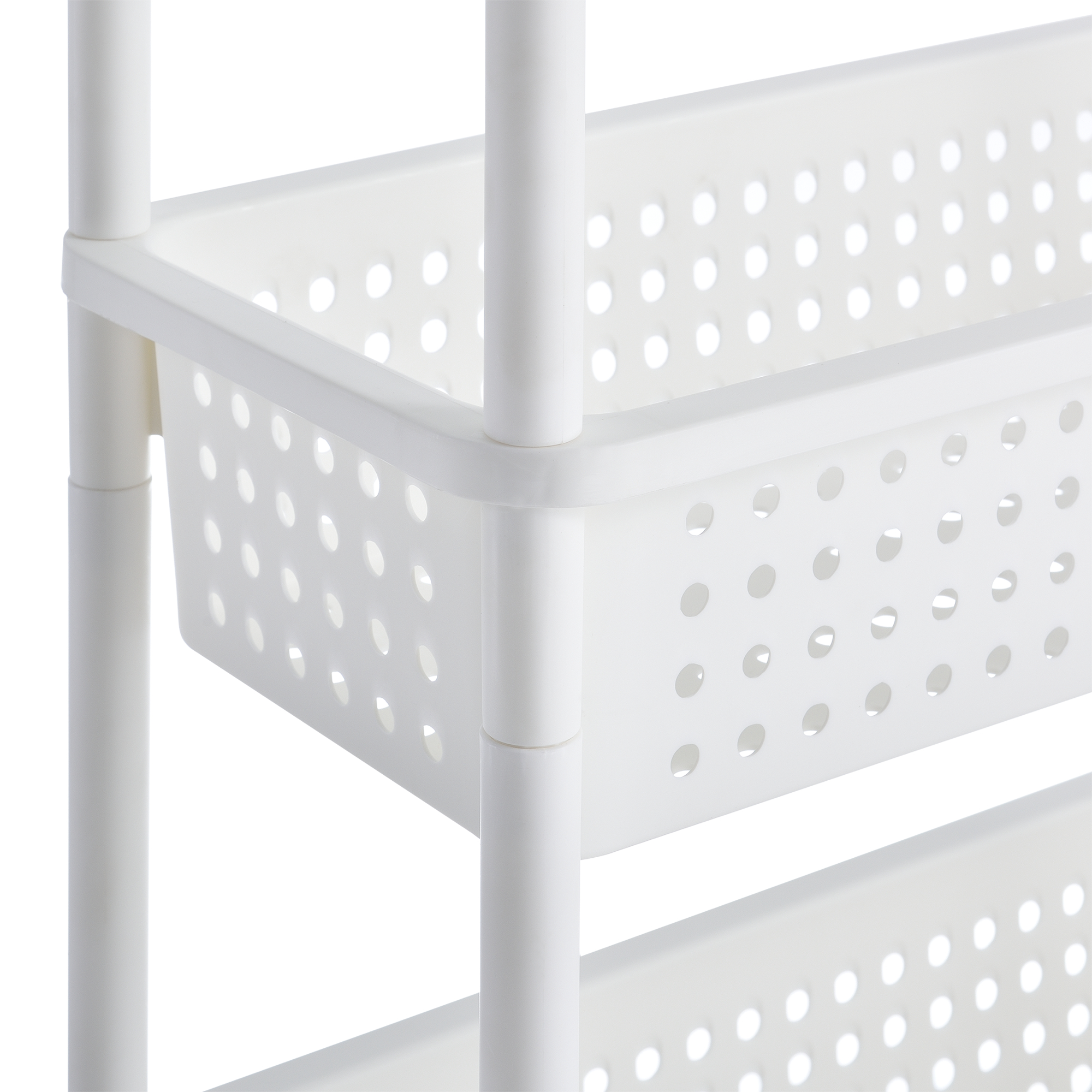 Das rollbare und praktische Nischenregal eignet sich perfekt um verschiedene Dinge auf kleinsten Raum zu verstauen. Das Allzweckregal kann in kleine Ecken verschoben werden und ermöglicht durch die Kunststoffkörbe und die obere Ablage eine sortierte Aufbewahrung.