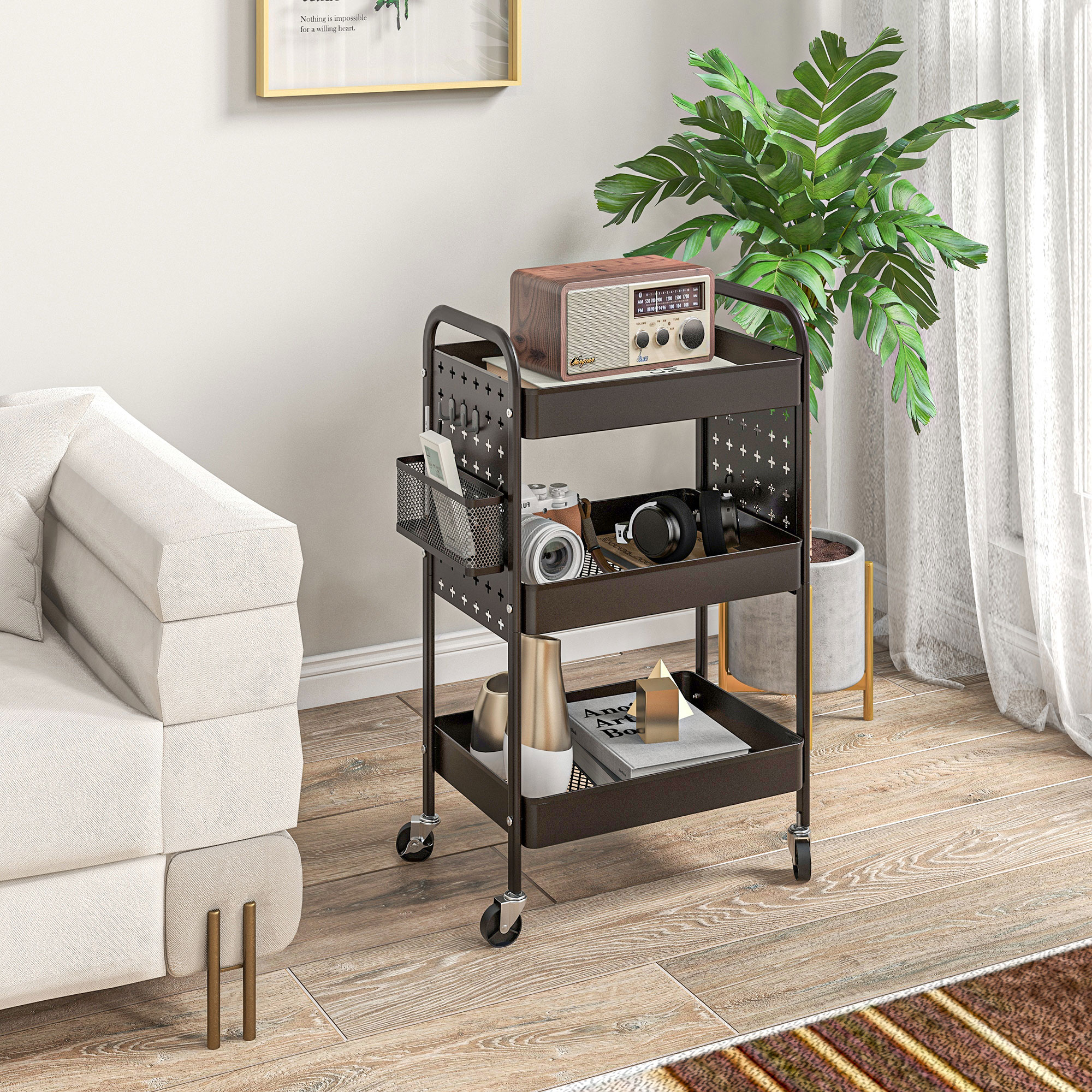 Dieser kompakte Rollwagen ist ideal für kleine Räume, in denen mehr Stauraum benötigt wird. Die Gitterkörbe und die seitlichen Haken bieten viel Platz für verschiedene für Lebensmittel oder Zubehör. Ausgestattet mit leicht zu ziehenden Griffen für einen einfachen Transport. Vier leichtgängige Räder mit zwei Bremsen ermöglichen es Ihnen, den Nischenwagen zu bewegen, wo immer Sie ihn brauchen. Er kann als Badezimmerwagen, Servicewagen, Küchenwagen und Wäschewagen verwendet werden.