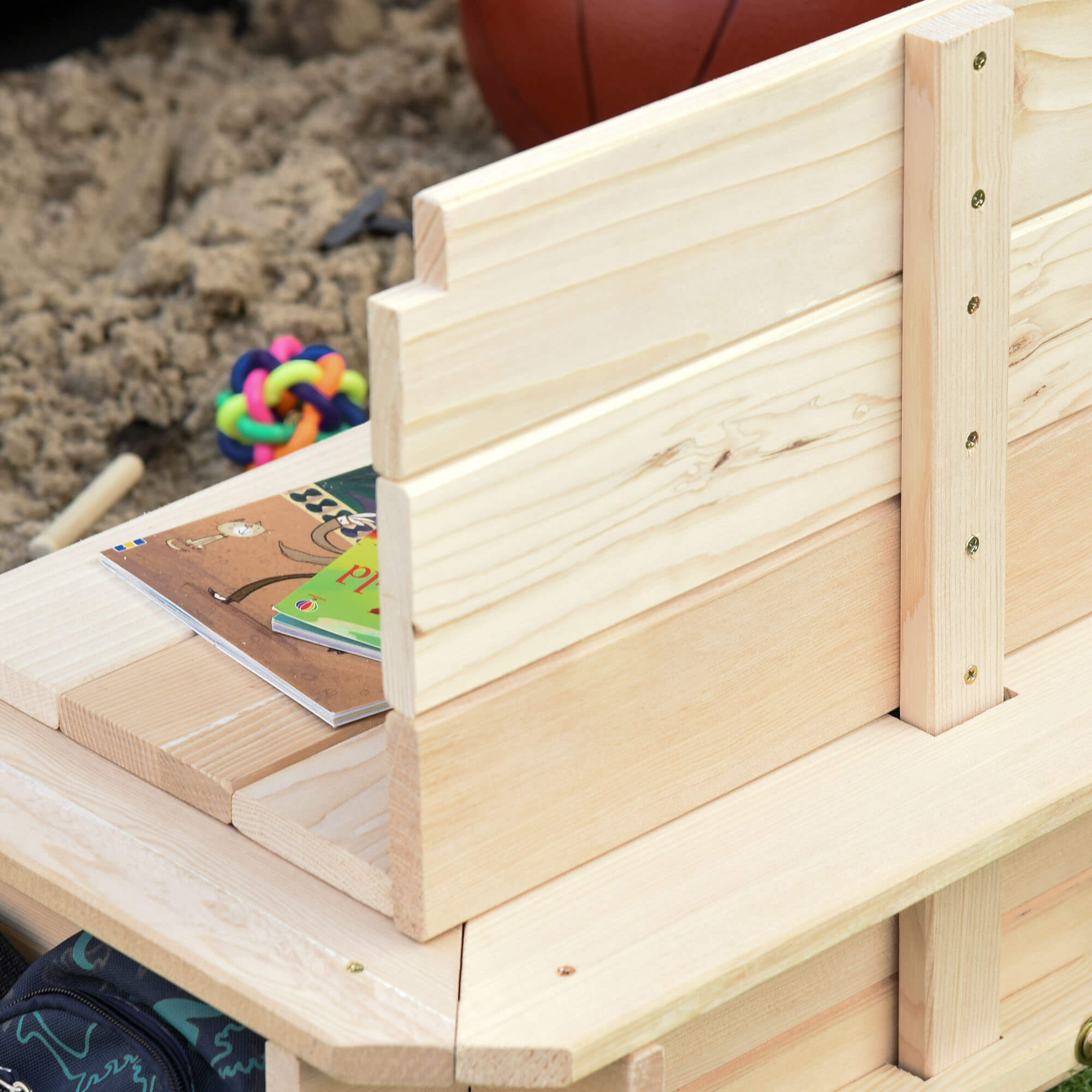 Ist Ihr Kind süchtig danach, mit Sand zu spielen? Unser innovativ gestalteter Sandkasten wird sicher die Lieblingsspielstation Ihres Kindes werden! Er verfügt über eine bequeme Sitzbank, die die Feuchtigkeit draußen hält, und bietet dennoch genug Platz für mehrere Kinder zum gemeinsamen Buddeln, Bauen und Erforschen. Hochwertiges Tannenholz sorgt dafür, dass der Sandkasten langlebig ist.