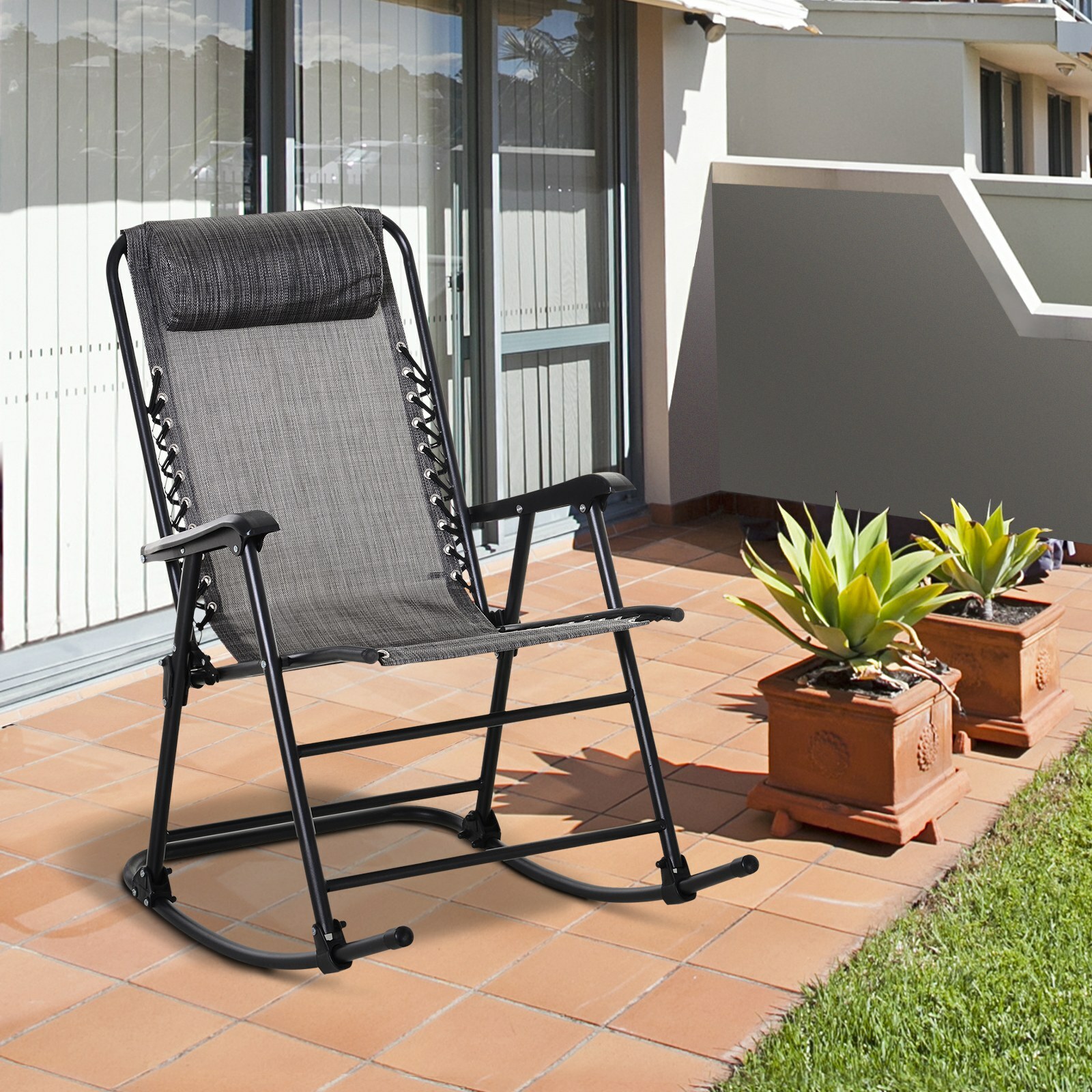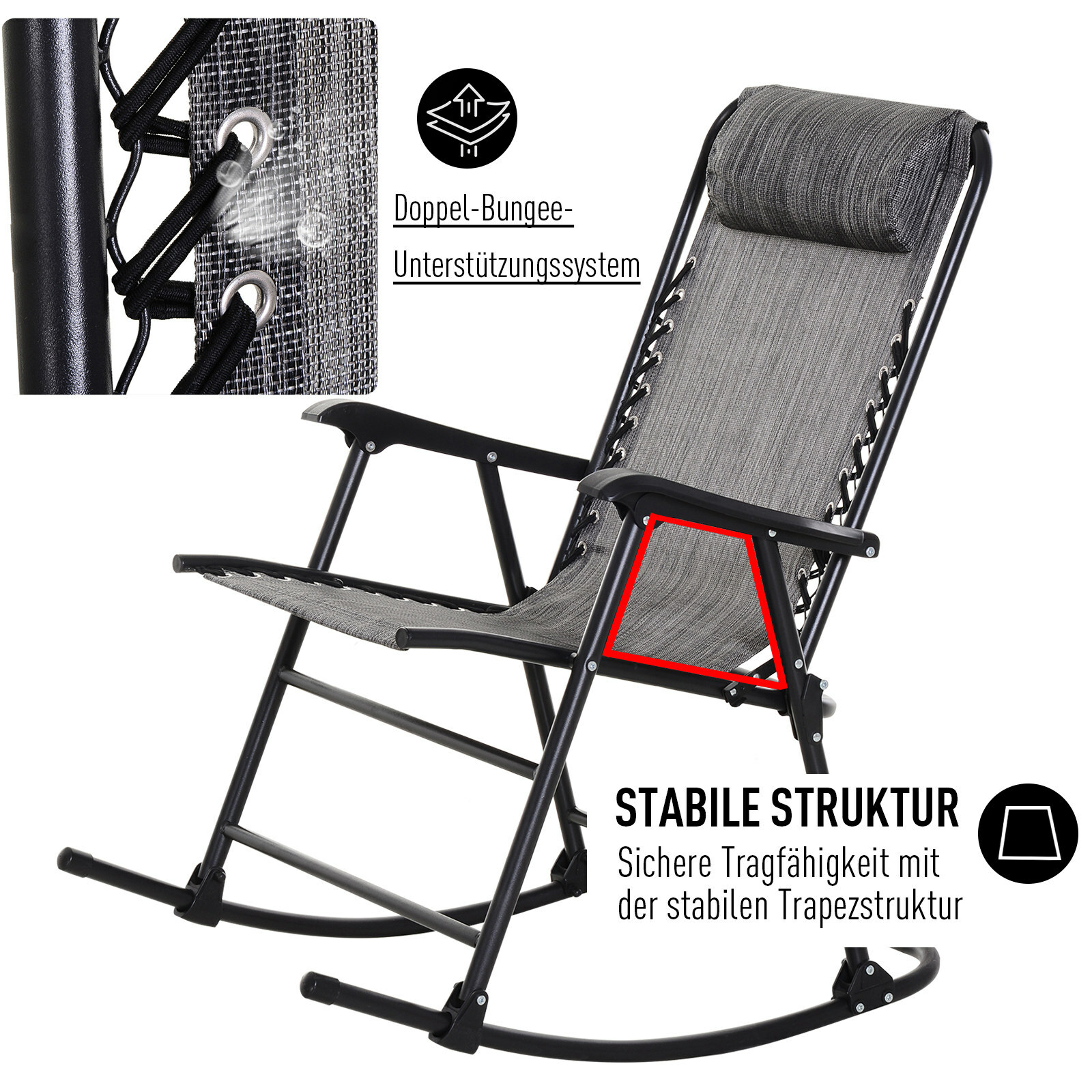 Unser Schaukelstuhl ist für besonders gemütliche Momente gemacht. Schnappen Sie sich ein gutes Buch oder genießen Sie einfach den Moment, während Sie seicht vor und zurück schaukeln. Das robuste Stahlgestell ist super stabil. Die Sitzfläche und Rückenlehne sind aus atmungsaktivem Textilene gefertigt und ein Kopfkissen ist auch inklusive, damit Sie immer bequem sitzen. Elegantes Design, hoher Komfort und tolle Verarbeitung: Mit Ihrem neuen Schaukelstuhl kommt die Erholung direkt zu Ihnen nach Hause.