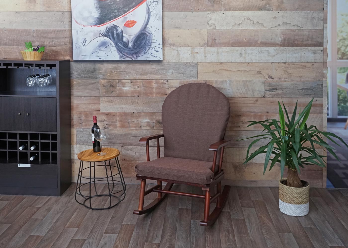 – Die Massivholzkonstruktion bringt mittels der Holzstruktur und dem weichen Polsterbezug einen ganz eigenen Charme mit sich. Der Schaukelstuhl vermittelt eine Atmosphäre zum Wohlfühlen.