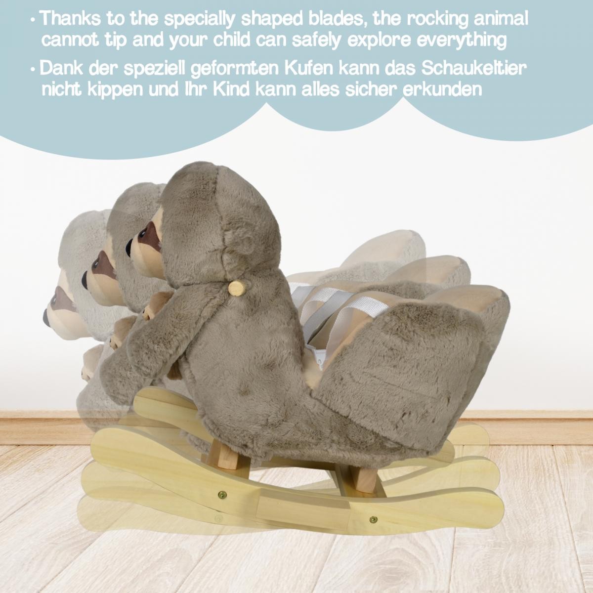 Unser kleines Schaukelspielzeug ist der perfekte Begleiter für Ihr tierbegeistertes Kind, während seiner Reise in die Welt des kreativen Spiels und der Phantasie. Dieser zierliche, pelzige Freund wird Ihrem Liebling stundenlangen Lernspaß bereiten. Für die Sicherheit Ihres lieben Sprösslings müssen Sie sich keine Sorgen machen. Das Schaukeltier ist mit einem verstellbaren Sicherheitsgurt ausgestattet und verfügt über zwei praktische Griffe, die das Gleichgewicht halten, sowie über Fußstützen, die für Stabilität sorgen. Ein dreiseitig kuscheliger Sitzbereich und obendrein eine Musikfunktion – mehr braucht Ihr Kind nicht, um mit dem Spielen zu beginnen!