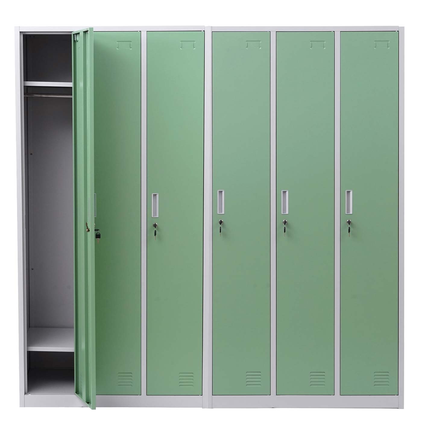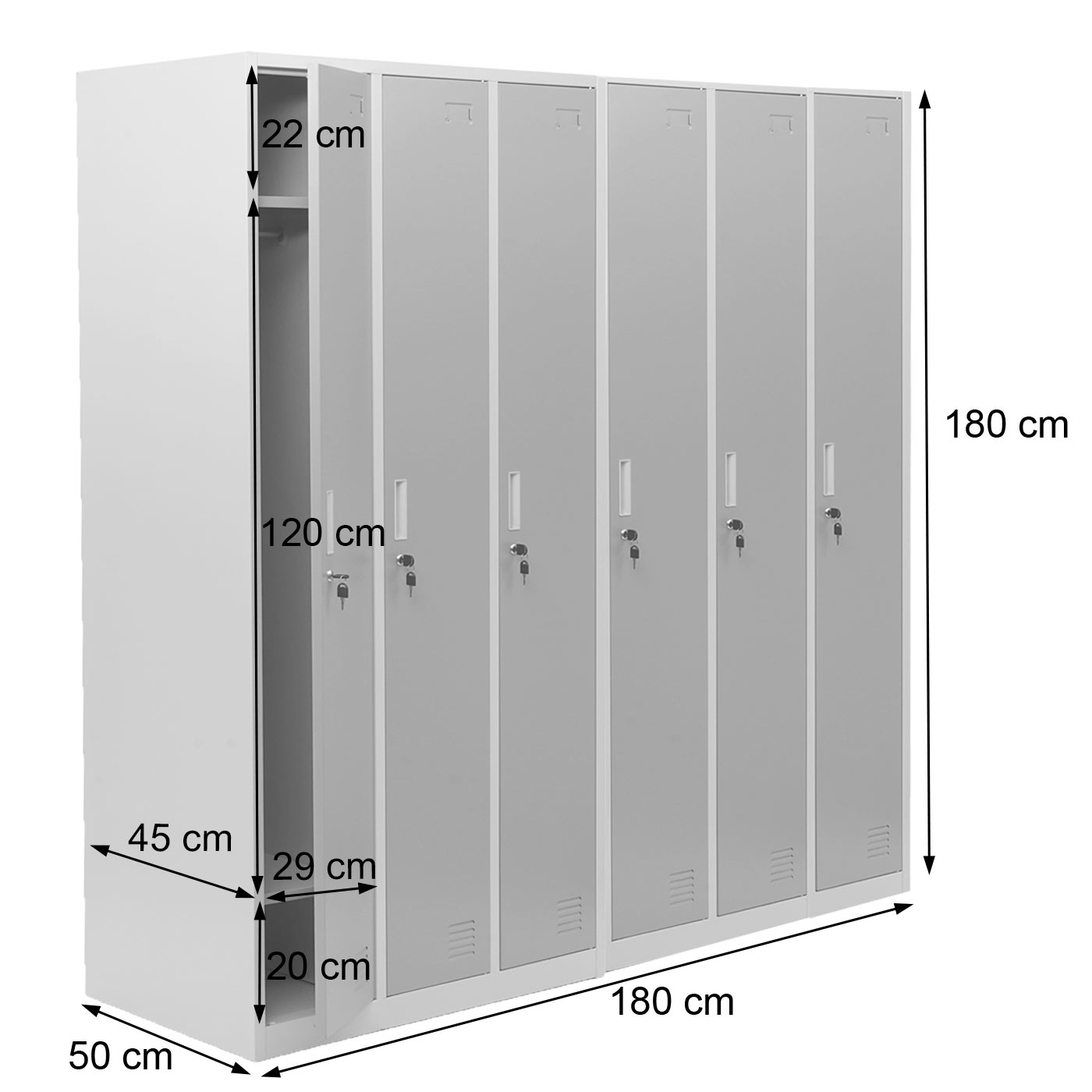 Geliefert wird zerlegt; einfacher und schneller Aufbau durch ein durchdachtes Stecksystem möglich. Ausgestattet mit 6 Schließfächern, Schlüsseln und Ersatzschlüsseln für jedes Fach, sowie Lüftungsschlitzen und einem Etikettenhalter. Das Drehriegelschloss und die einschlagenden Türen garantieren maximale Sicherheit. Verschiedene Kodierungen für die Schlösser gewährleisten bei größeren Bestellmengen individuelle Verschließungen.