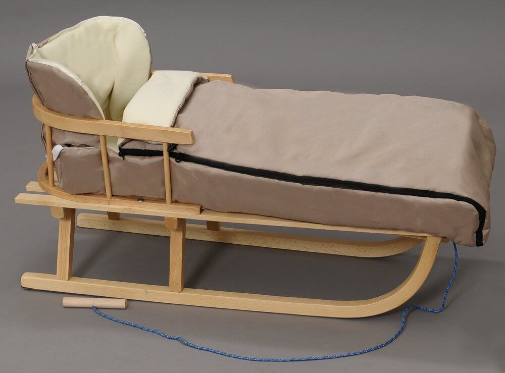 Schlitten mit Winterfusssack & Rückenlehne Mokka