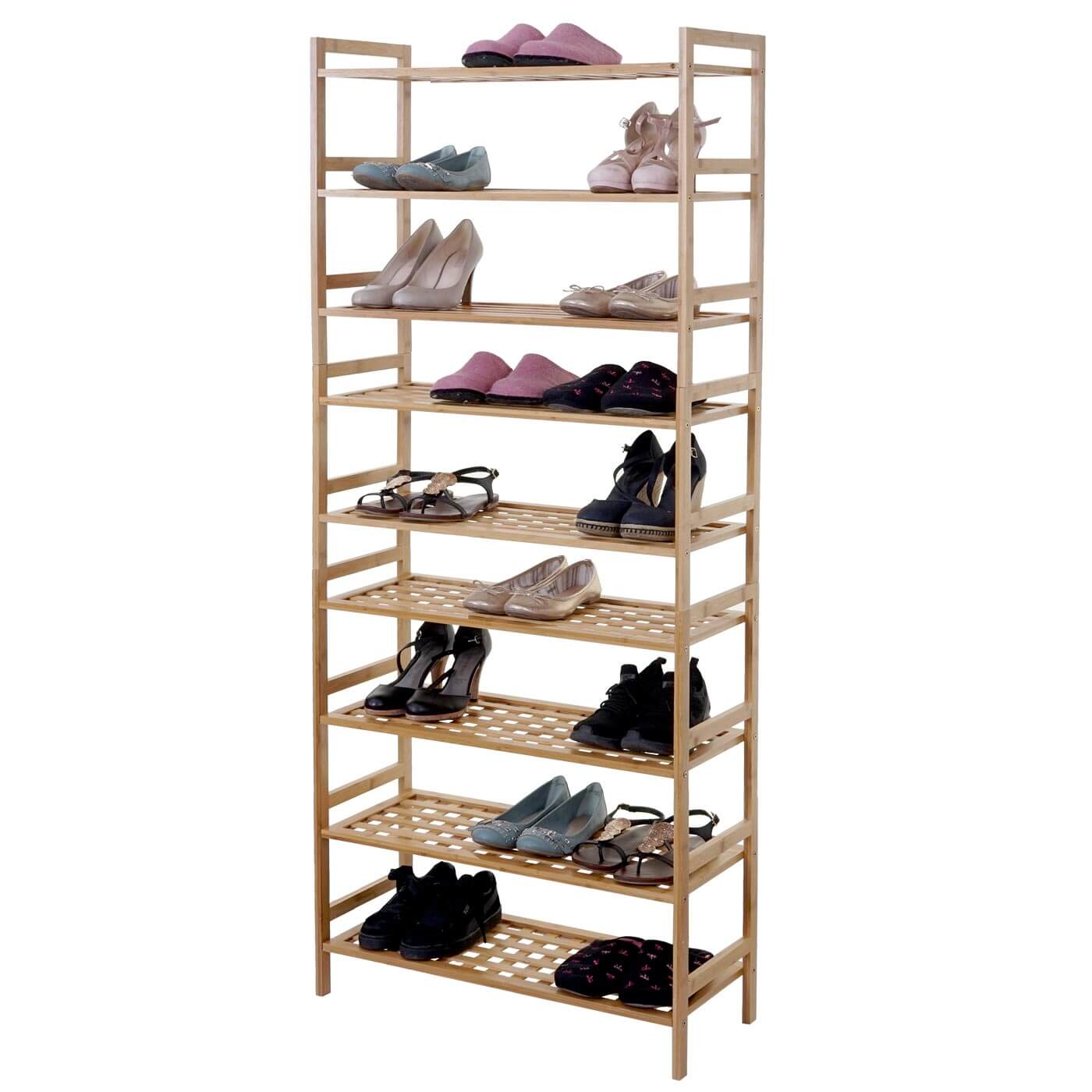 Möbel aus nachwachsenden Rohstoffen liegen derzeit voll im Trend. Dieses schöne Schuhregal aus Bambus trifft damit genau den Zahn der Zeit. Es ist ökologisch nachhaltig, robust, pflegeleicht und fügt sich dank seiner schlichten Eleganz perfekt in jede Art der Inneneinrichtung ein. Darüber hinaus ist das Regal auch noch erweiterbar. Einfach die mitgelieferten Dübel in die vorhandenen Bohrlöcher stecken und schon können Sie mehrere Regale stabil aufeinander stapeln, so bietet Ihnen Ihr neues Möbelstück viel Stauraum auf kleiner Fläche.
