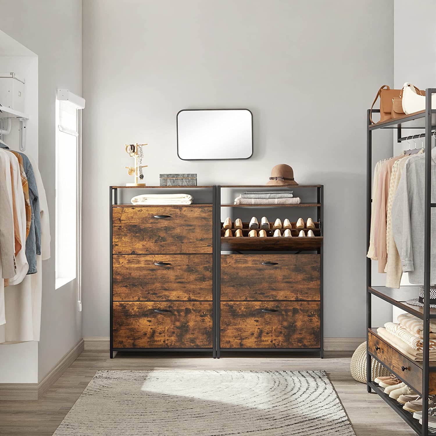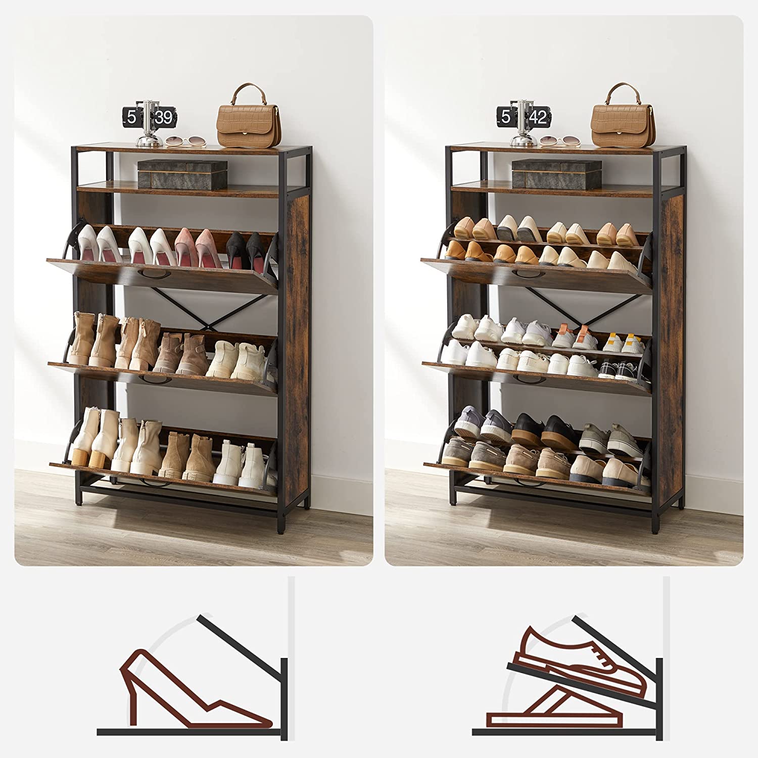 Für 15–24 Paar Schuhe & verstellbare Ablagen.