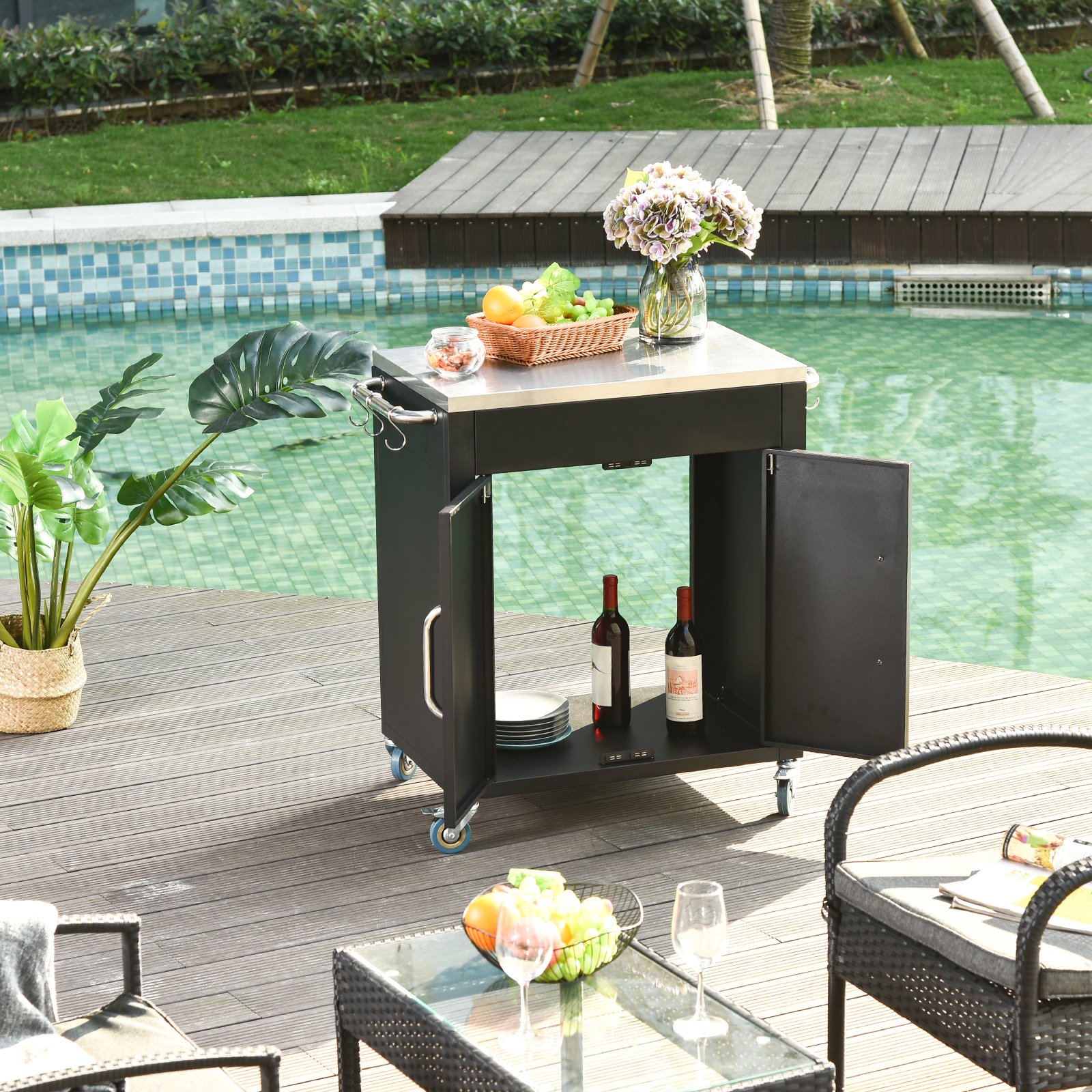 - Das schwarze Design macht den Servierwagen einfach und dezent.