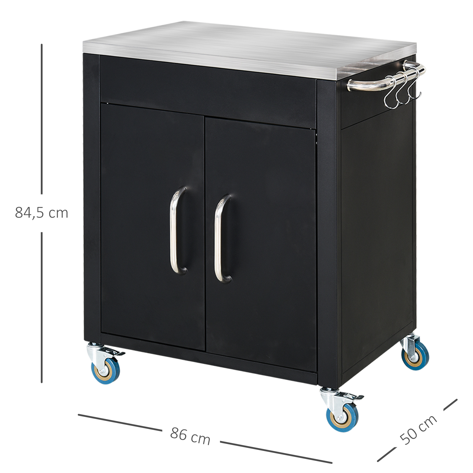 - 3 verchromte Haken auf jeder Seite bieten Platz zum Aufhängen von Werkzeugen.