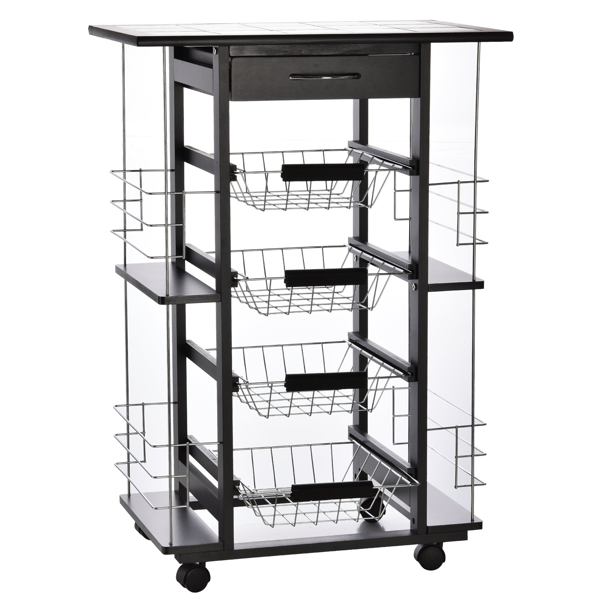 Der Küchenwagen bietet Ihnen optimalen Stauraum und macht Ihr Haus wieder klar und ordentlich! Hergestellt aus hochwertigem Edelstahl und Keramikfliesen, maximale Belastung bis 50 kg, ermöglicht es Ihnen, große Gegenstände darauf zu legen. Das klassische Schwarz-Weiß-Erscheinungsbild passt in jedes Dekor in Ihrem Haus wie Küche, Schlafzimmer, Wohnzimmer, Bad, Büro usw. Machen Sie sich keine Sorgen, wenn Sie es hart bewegen. 360-Grad-Rollräder sorgen dafür, dass es sich schneller und reibungsloser bewegt.