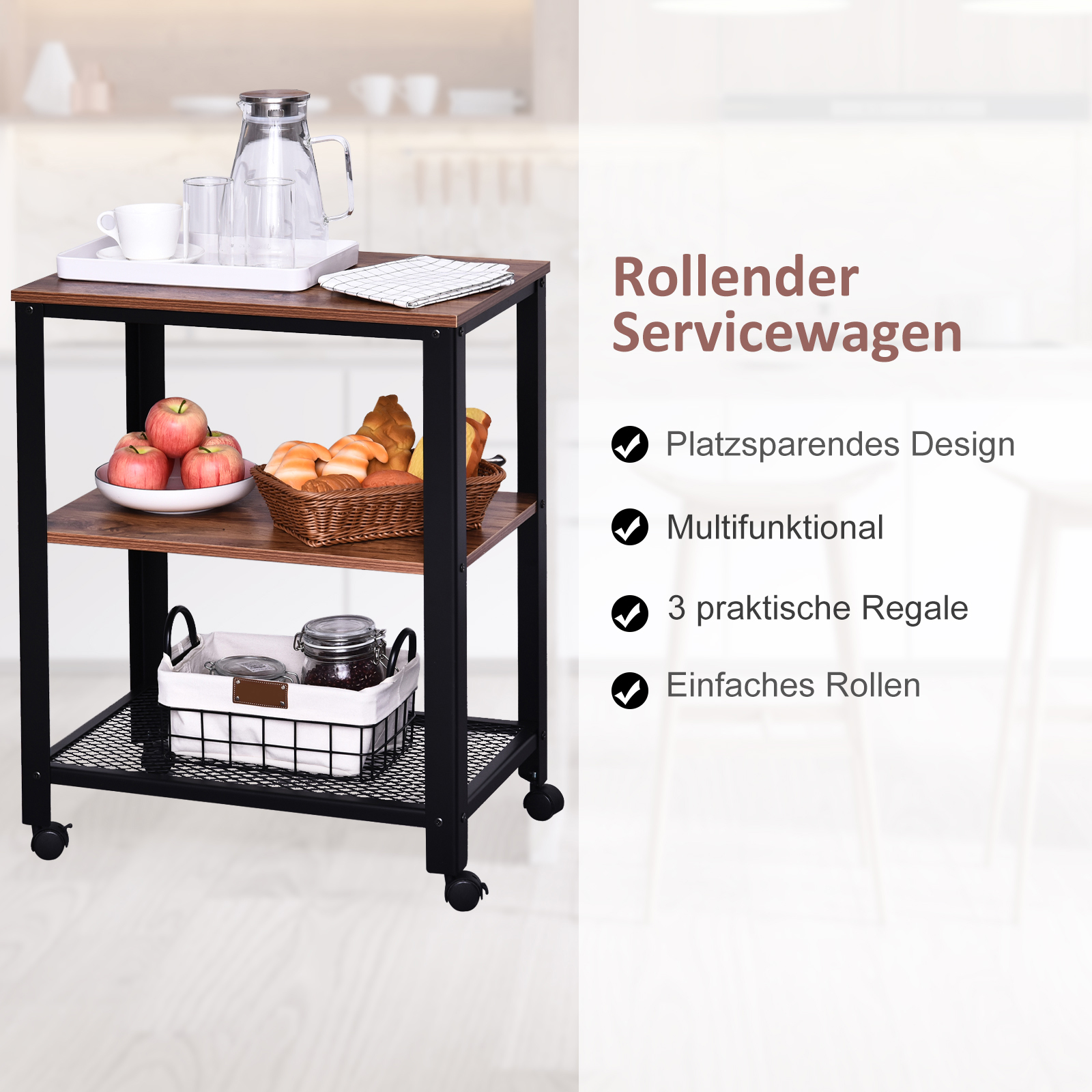 Möchten Sie einen multifunktionalen Aufbewahrungswagen, der Ihnen hilft, Ihre Sachen zu organisieren? Unser Küchenwagen im Industriestil kombiniert Mode und Funktion und ist die beste Wahl für Sie. Dieser Küchenwagen kann Küchenutensilien aufbewahren und Ihnen beim Servieren helfen. Als Beistelltisch beim Sofa können ist er praktisch für Ihre Fernbedienung, Kaffee, Magazine oder anderes. Damit können Sie Ihre Küchenzeit oder Ruhezeit genießen!