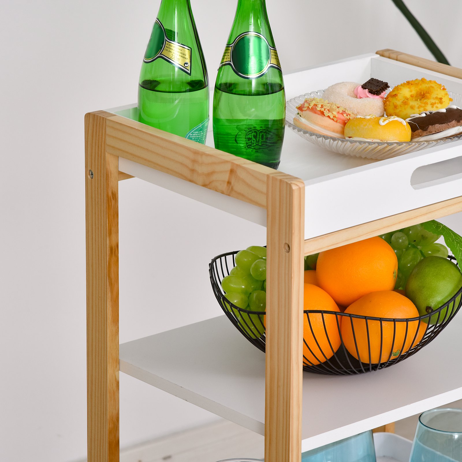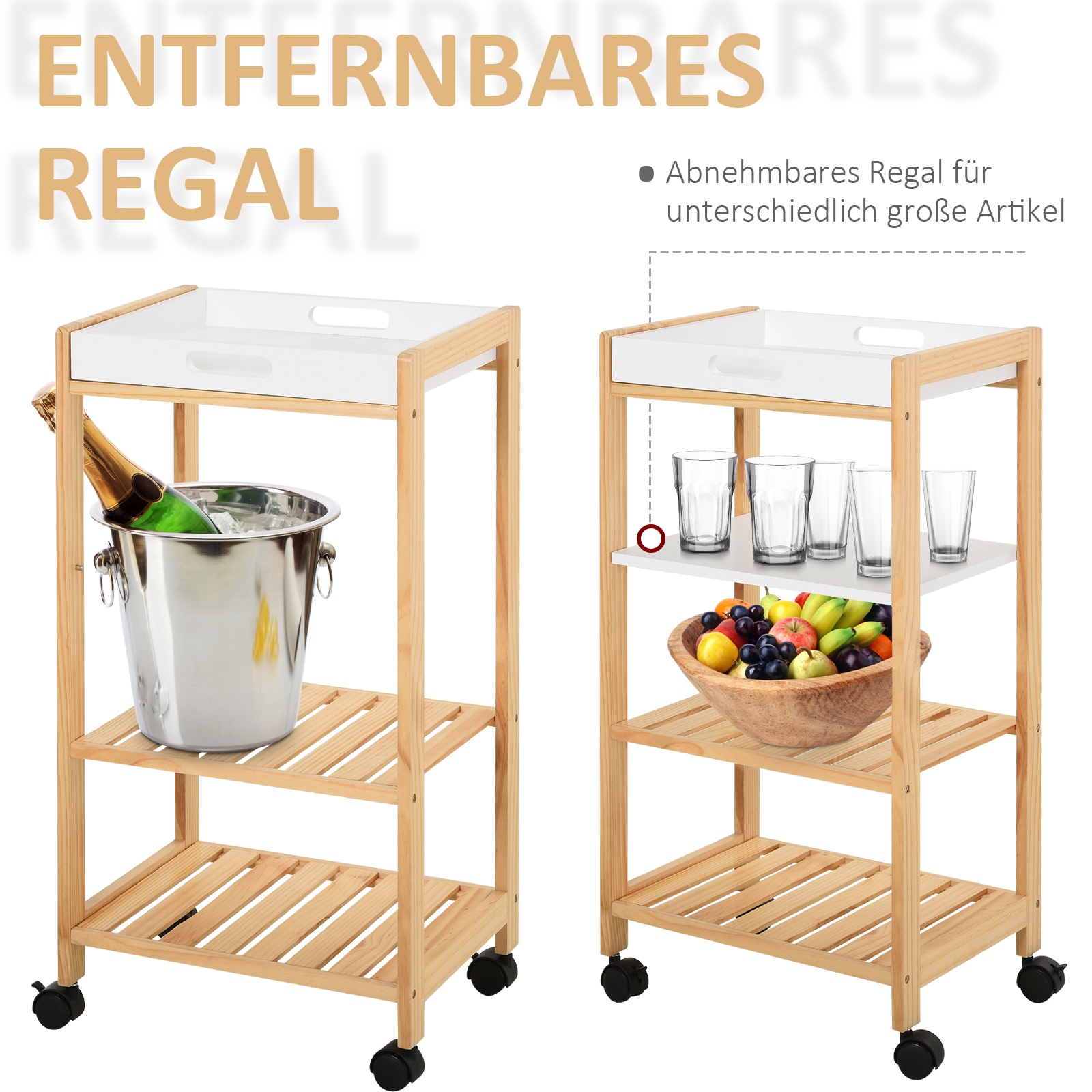 Servierwagen Küchenwagen mit Tablett Kiefer 40x30x76 cm